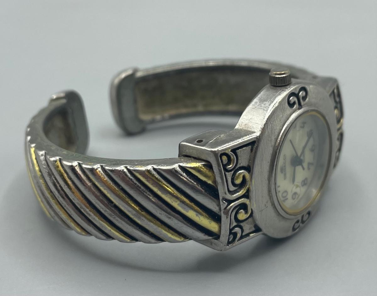 This item is in a used condition. The watch doesn’t work, it could mean that it needs a new battery. It has some dust and discoloration dude to years of ownership. It is water resistant and adjustable to fit onto your wrist.