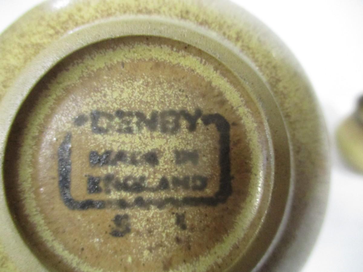 Denby Brown Pottery Cup and Saucer Set Made In England. Items are in used condition- at least one has a chip.