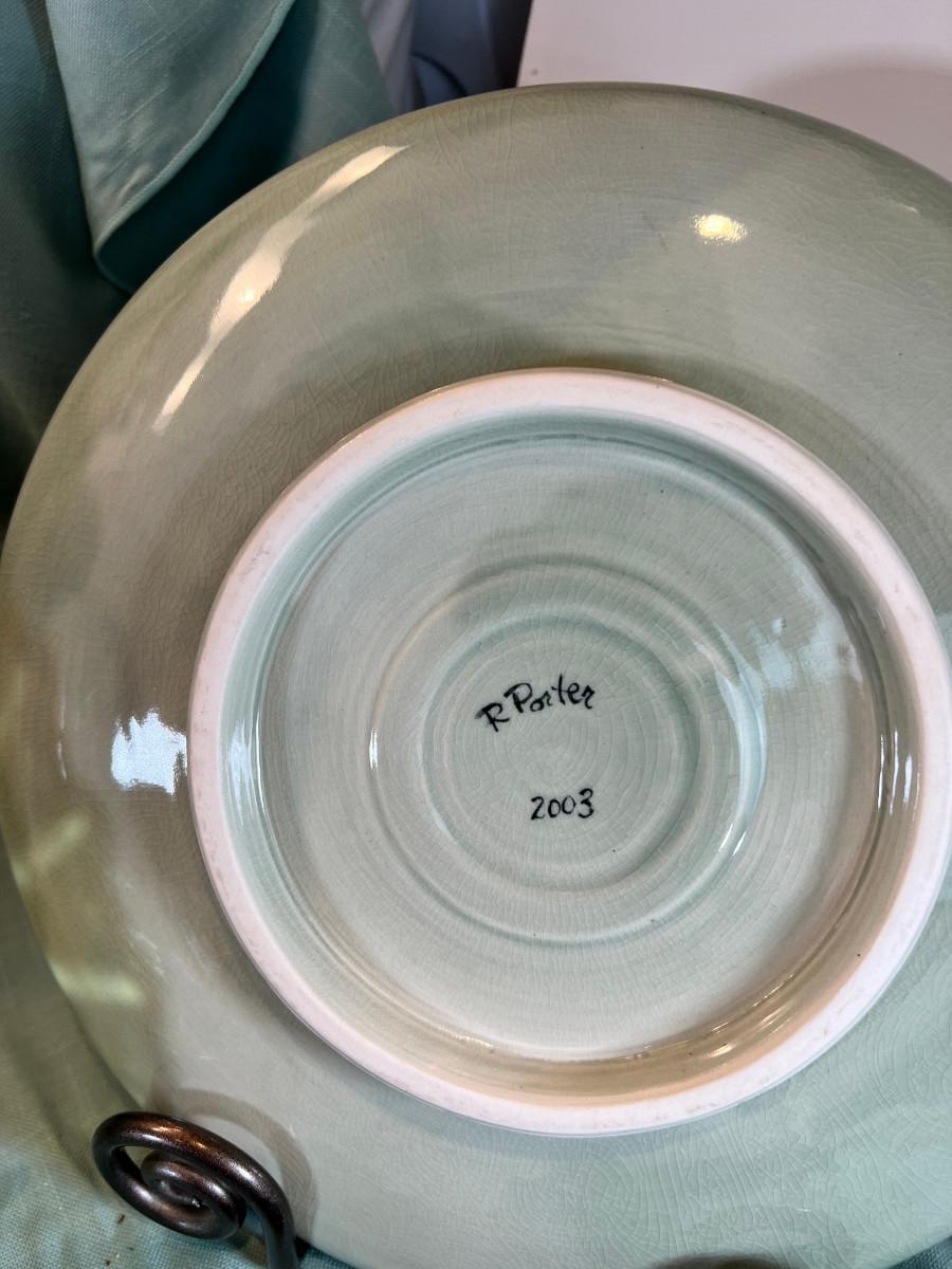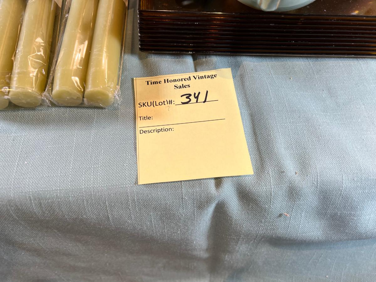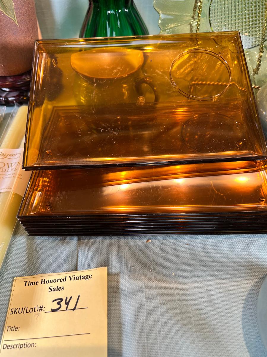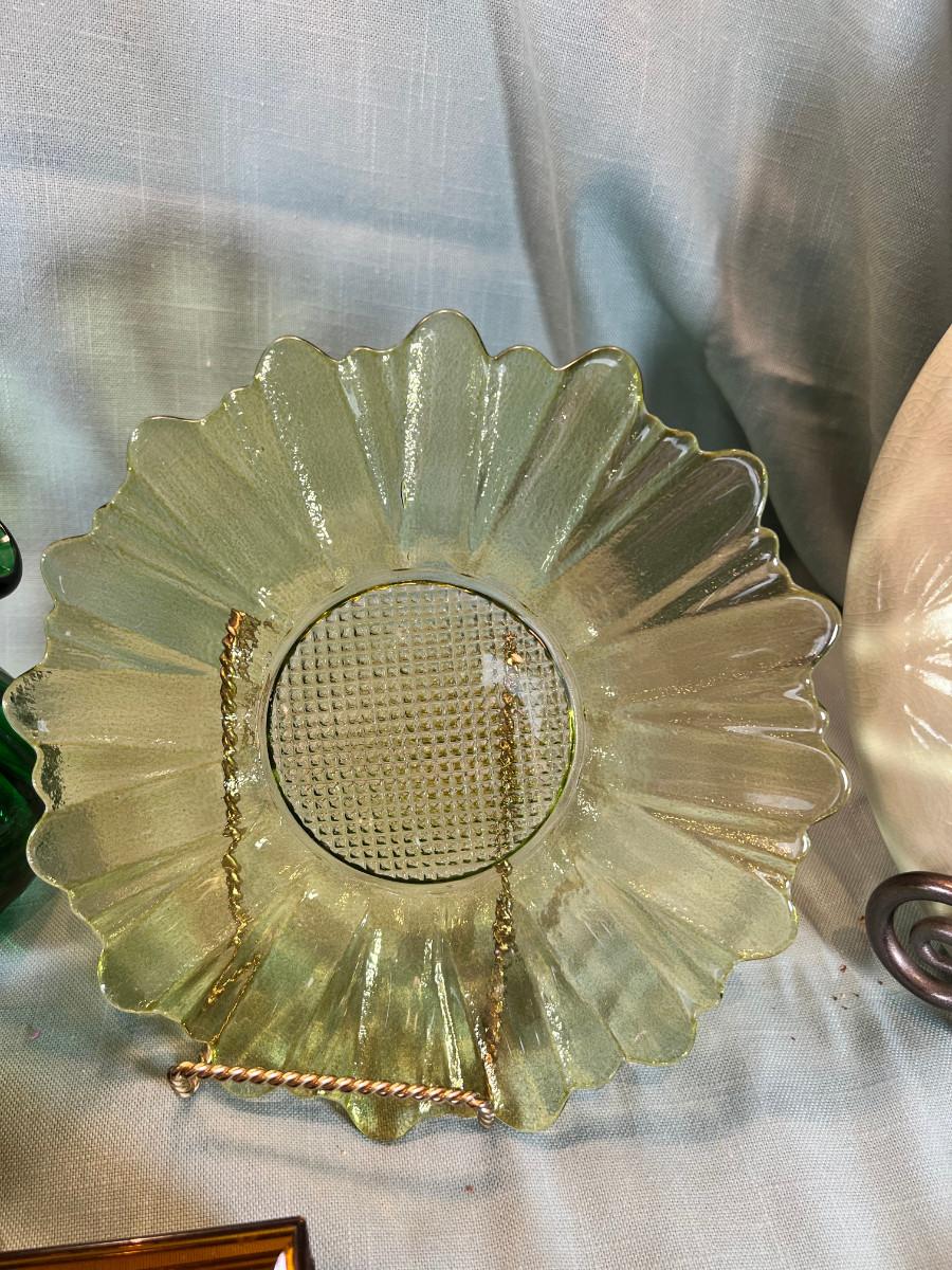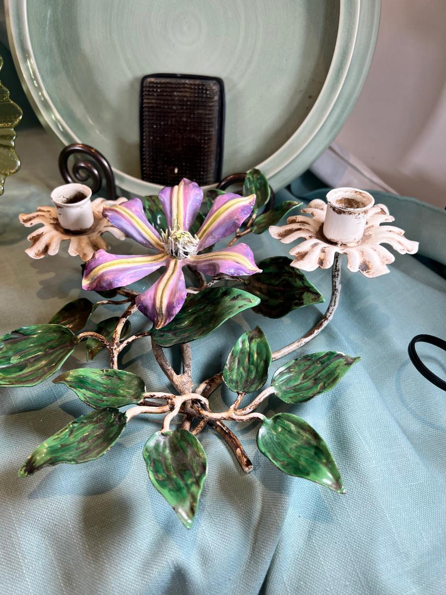Denby Cups, Large Green ceramic bowl and large rectangular floral holder. Metal Italian floral candle holders, new candles, handmade stoneware vase and stand, Hand made crystalline dip bowl, Vintage orange glass bowls, Set of Vintage Lucite Amber rectangle plates,