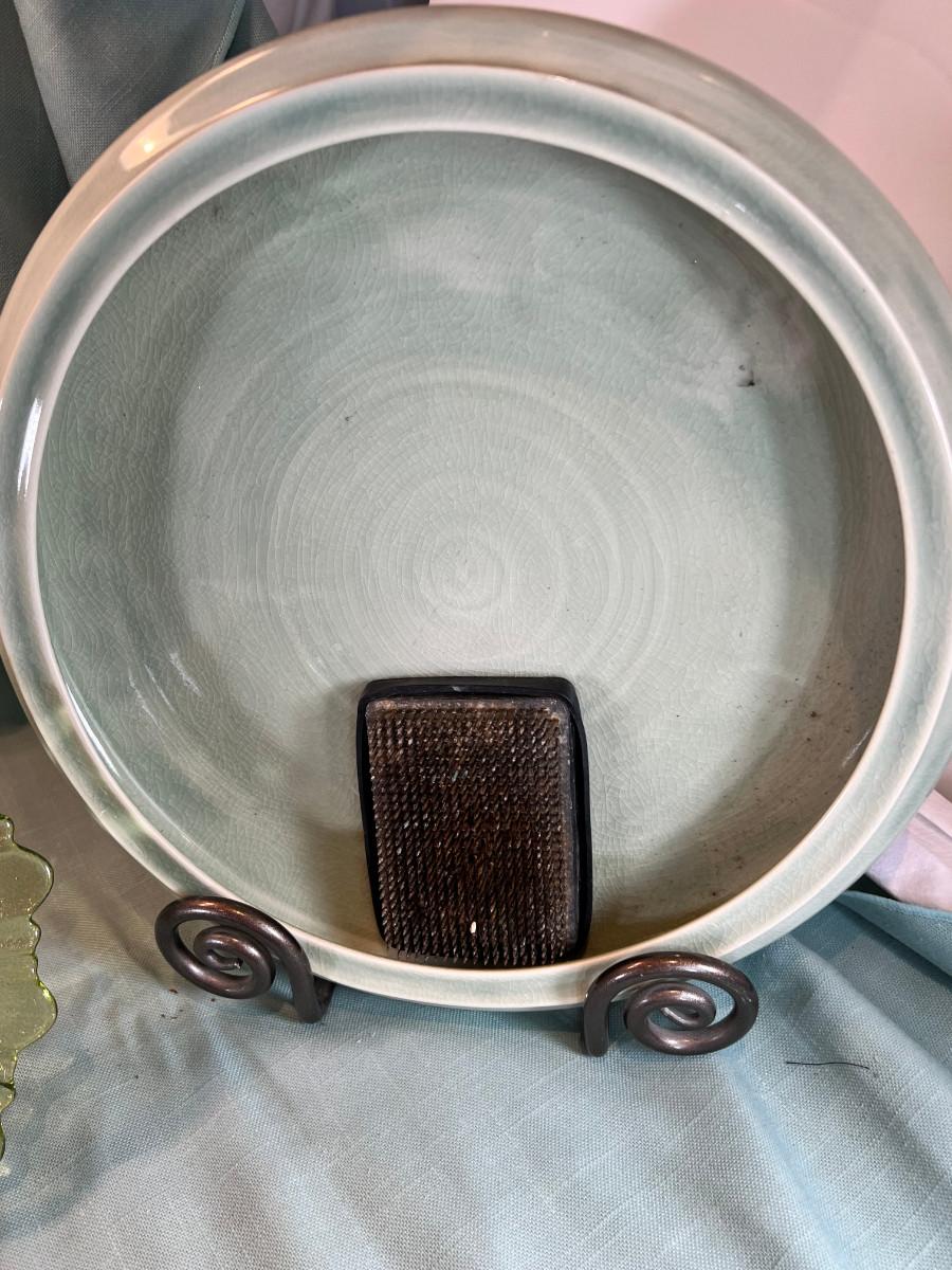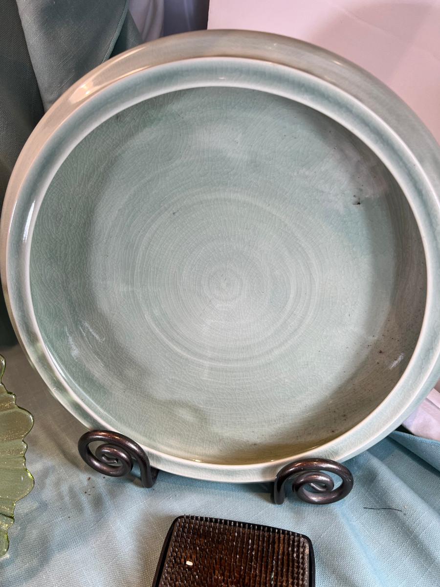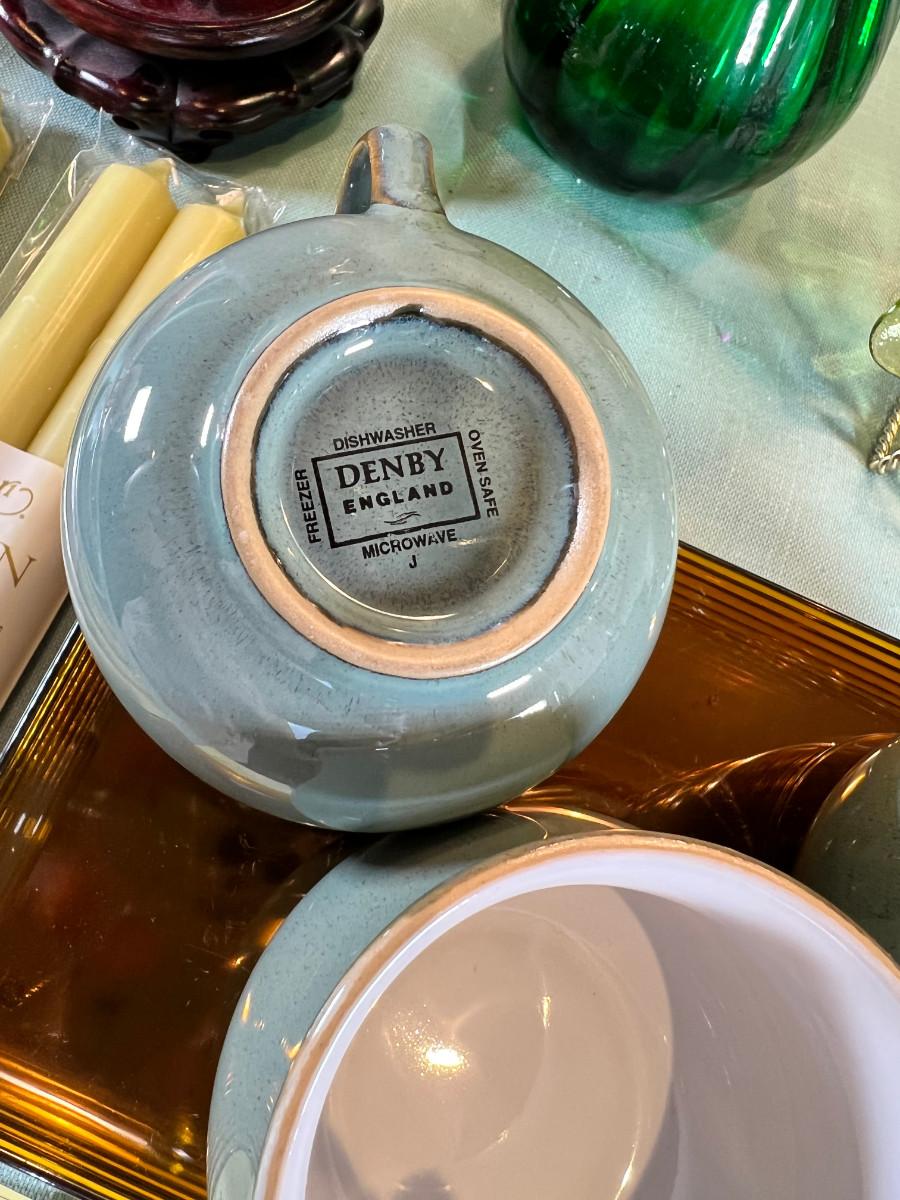 Denby Cups, Large Green ceramic bowl and large rectangular floral holder.