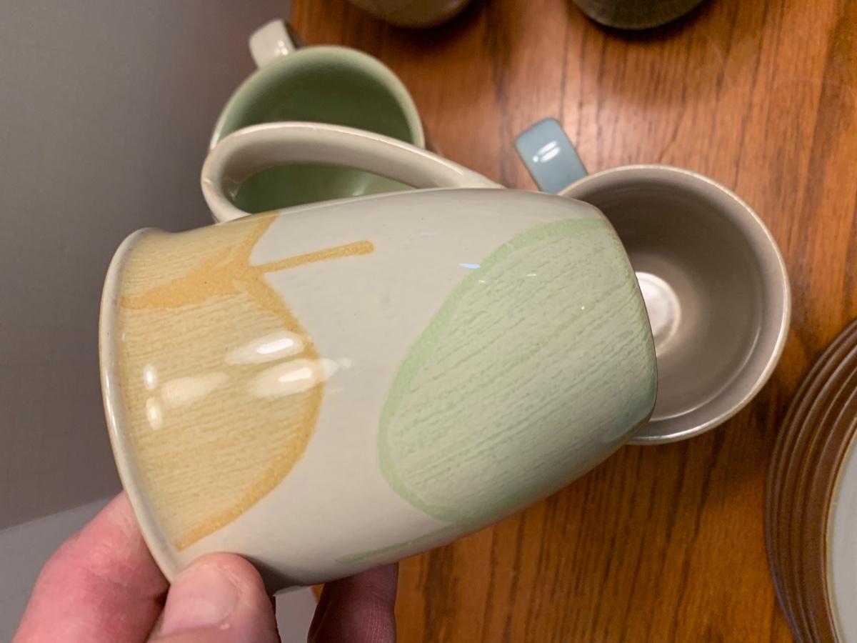 A couple coffee mugs don’t quite match - still a very nice quality breakfast set. Buying as is as found in the estate.