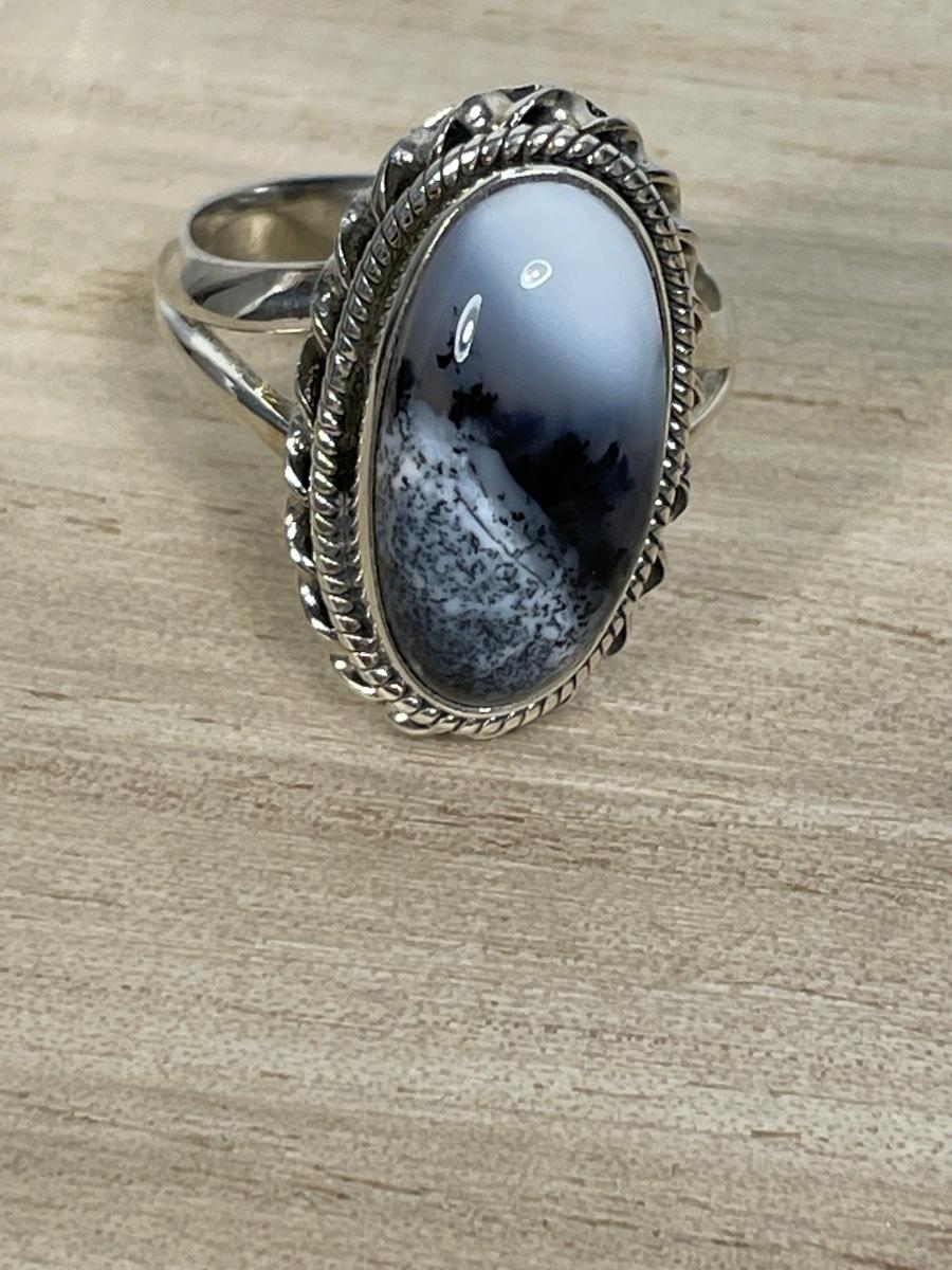 Dendritic Opal sterling silver ring