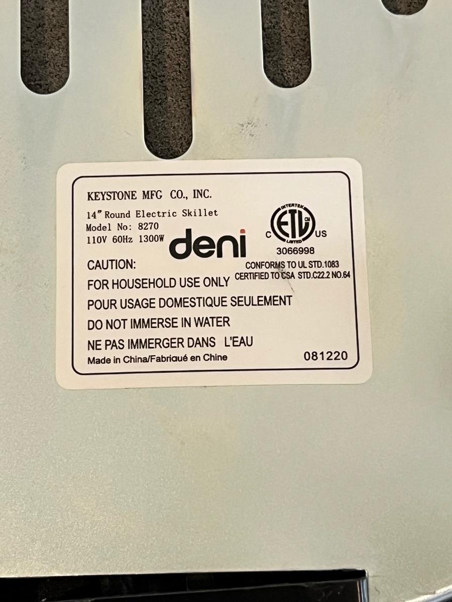 DENI ~ 18” Lidded Electric Skillet ~ New