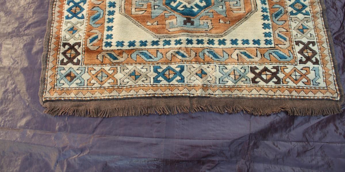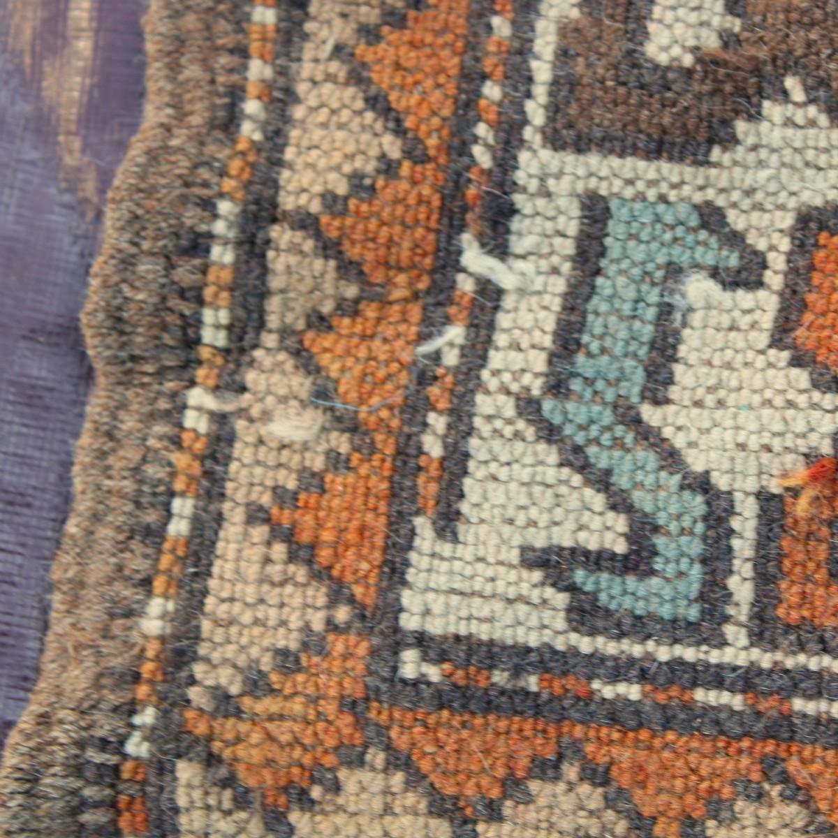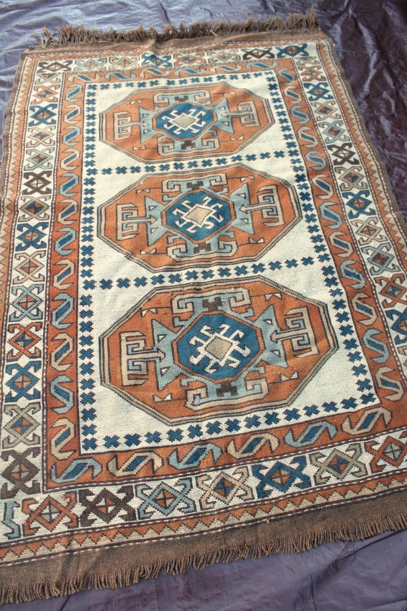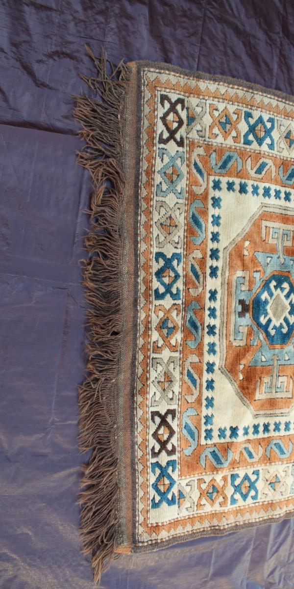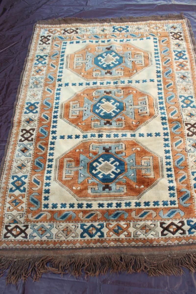 Denim blue, rust and ivory Turkish wool rug; machine made