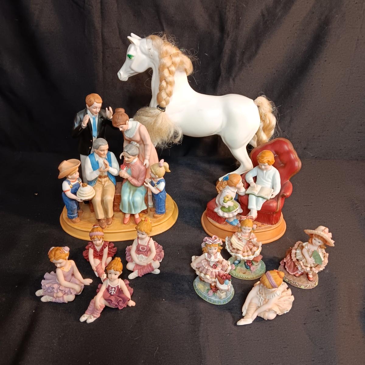 DENIM DAYS FAMILY WITH FIGURINES AND A PLASTIC HORSE