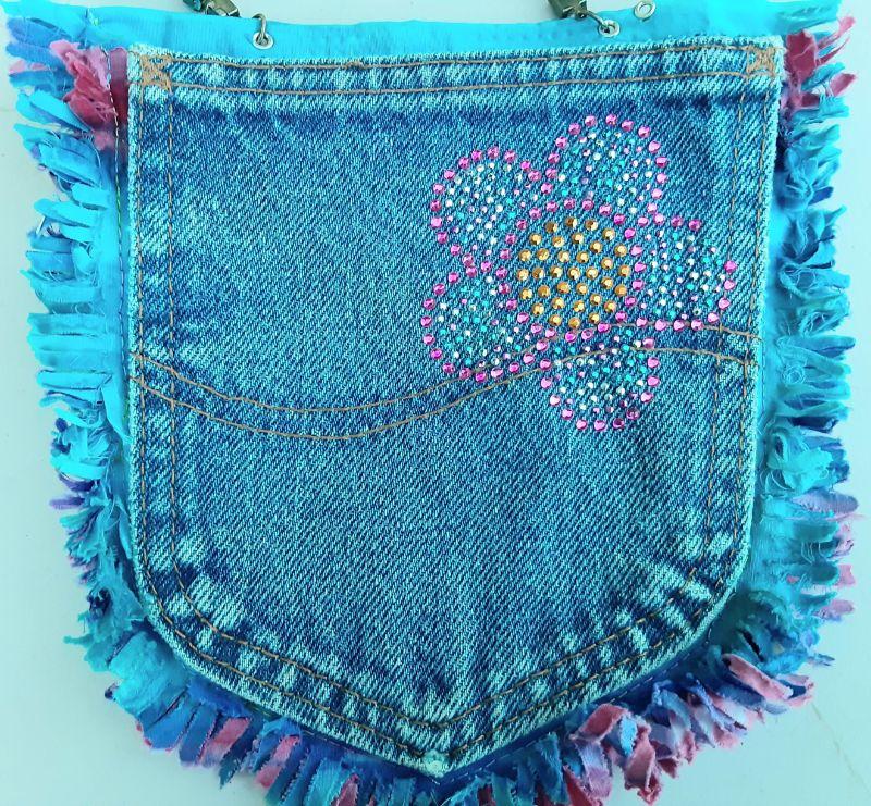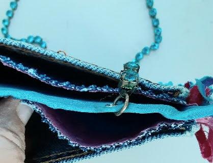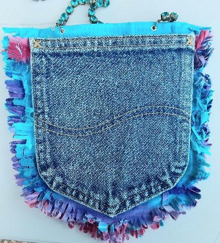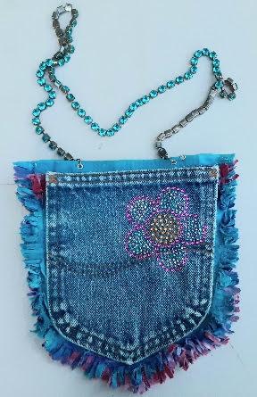 with chain, measures 15in. pocket is 7in. by 8in. 4 compartments inside