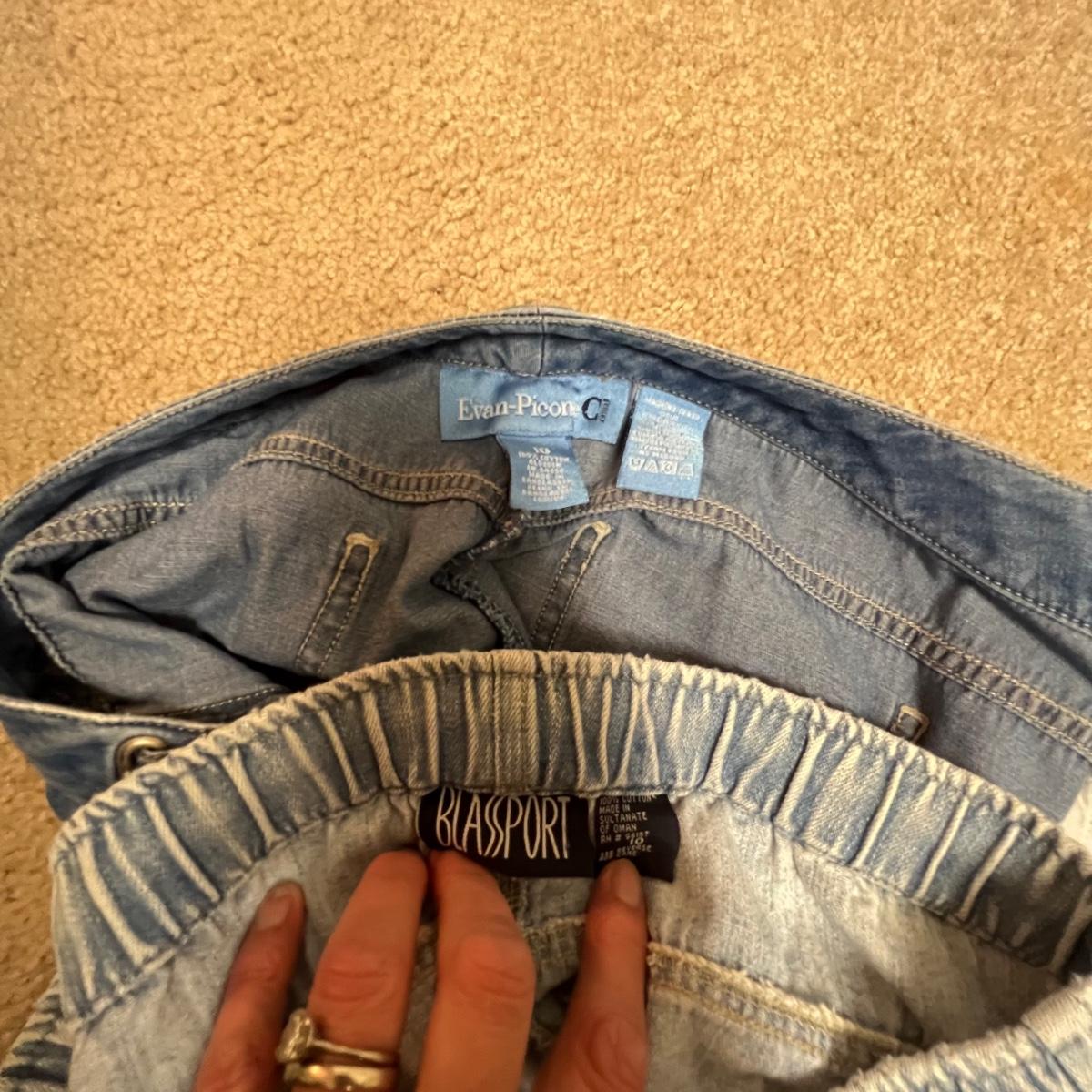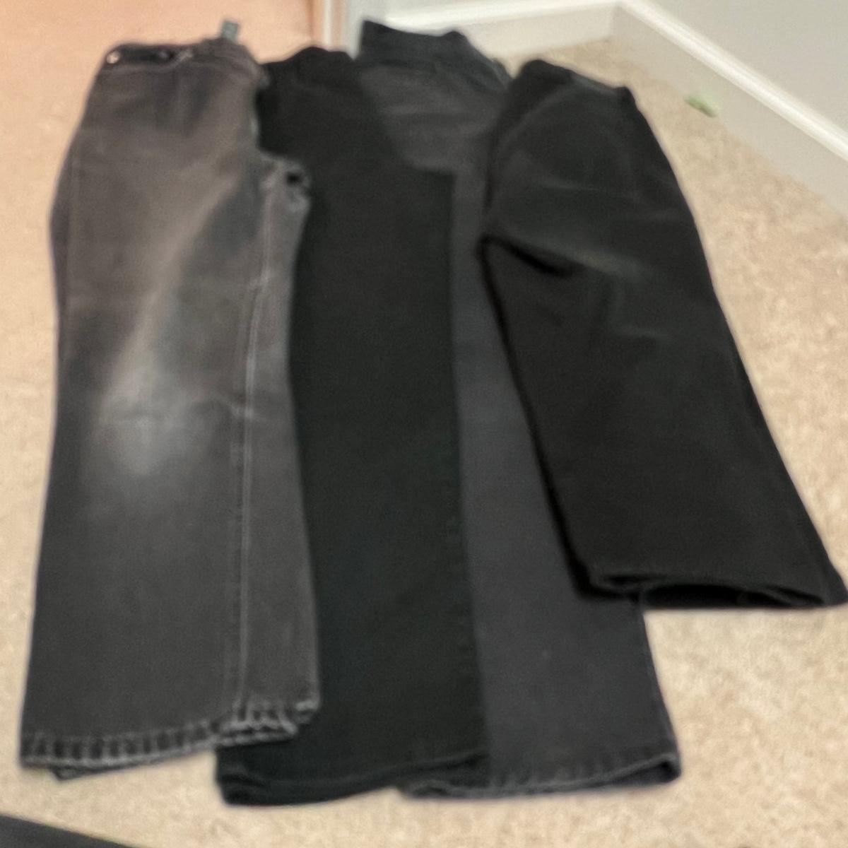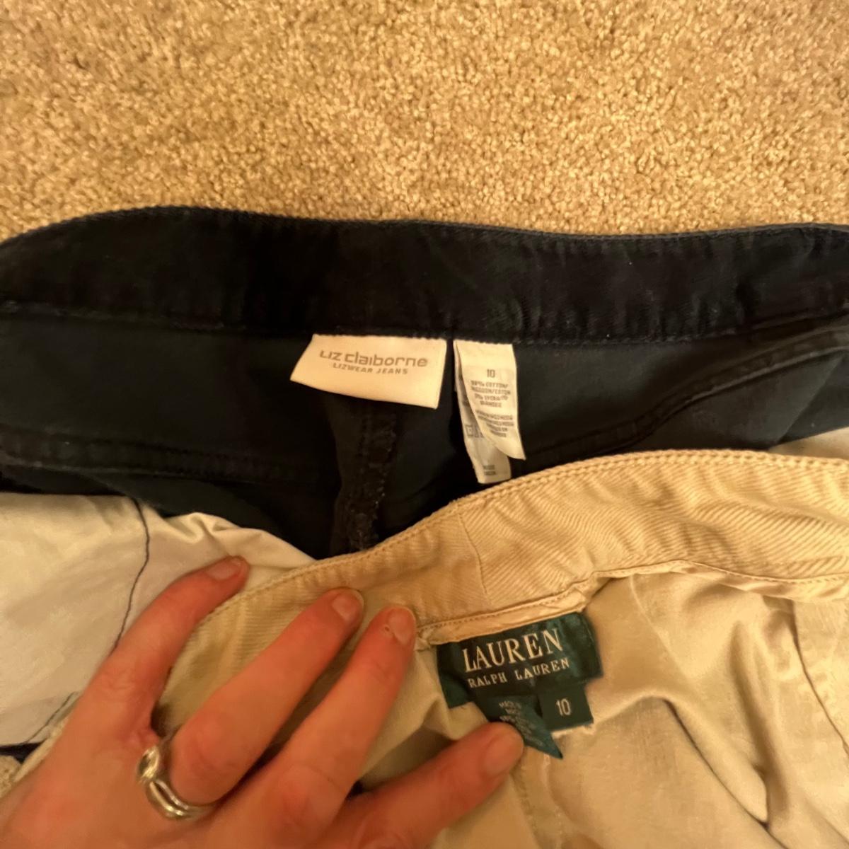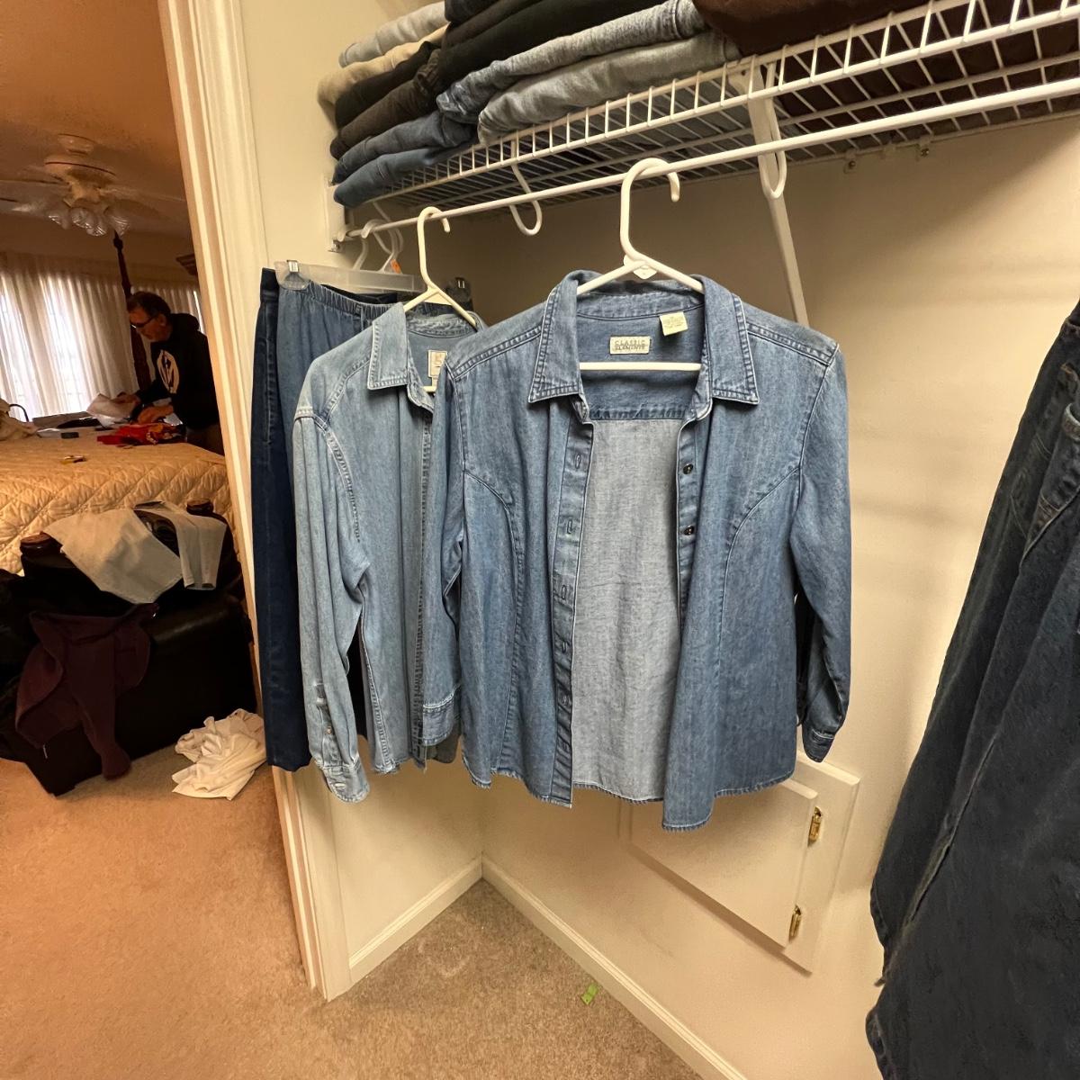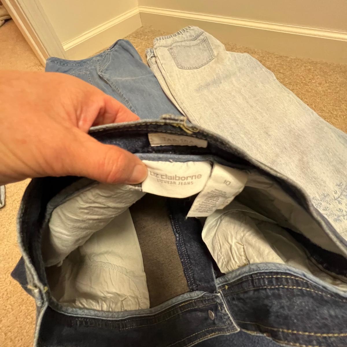 Ten plus pairs of jeans plus skirts and a couple of shirts make up the large amount of denim in this lot. Also included are four pairs of corduroy slacks. Sizes for pants are mostly 10 and a couple of pairs are capris, the rest are full length pants. See images for sizes and brands.