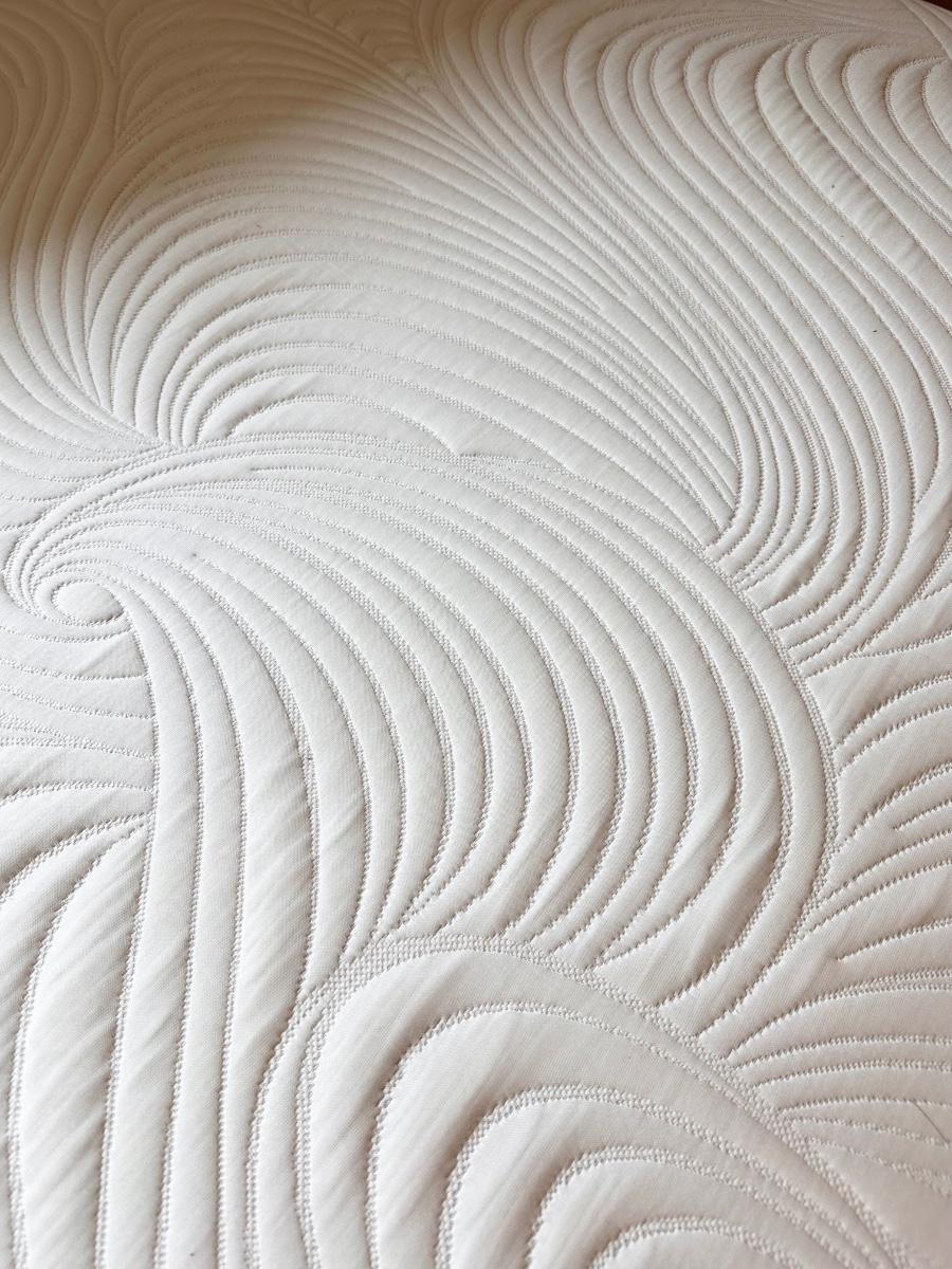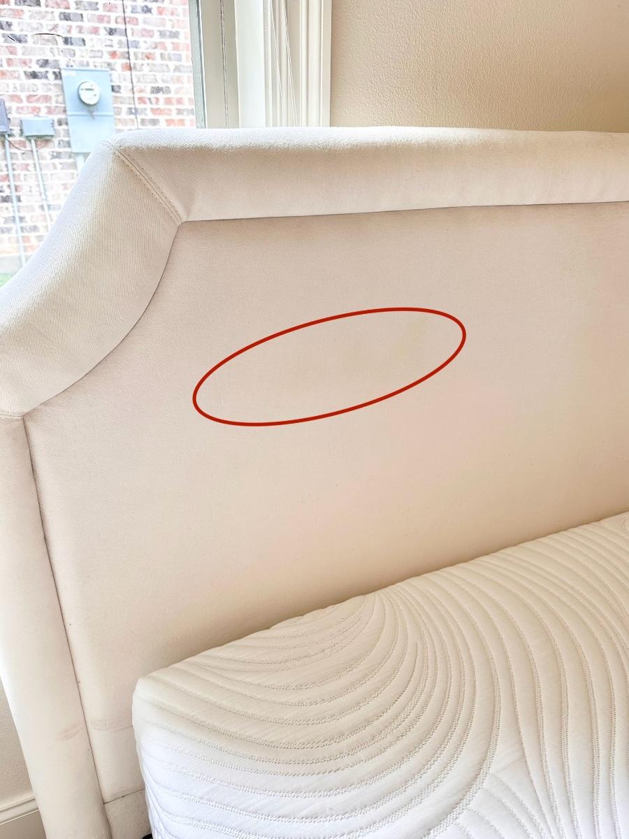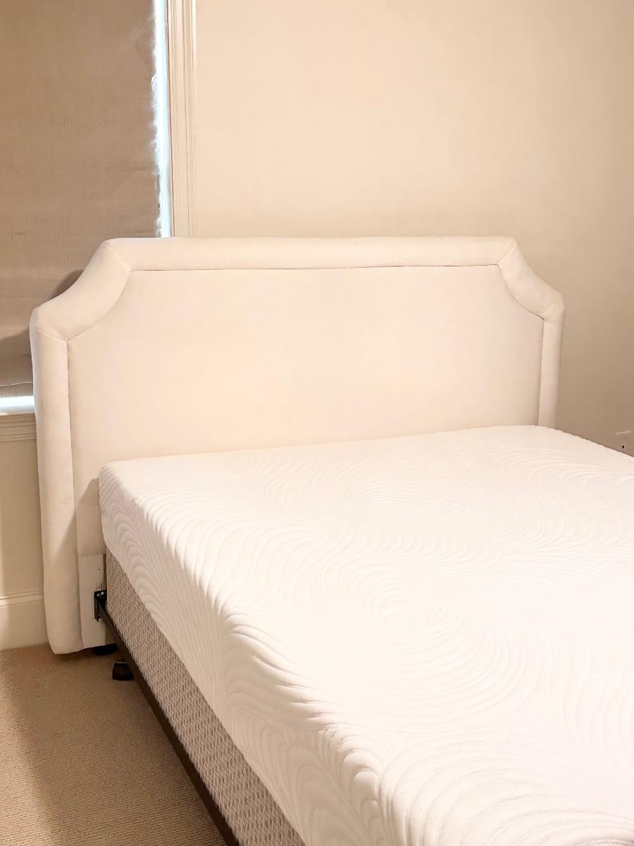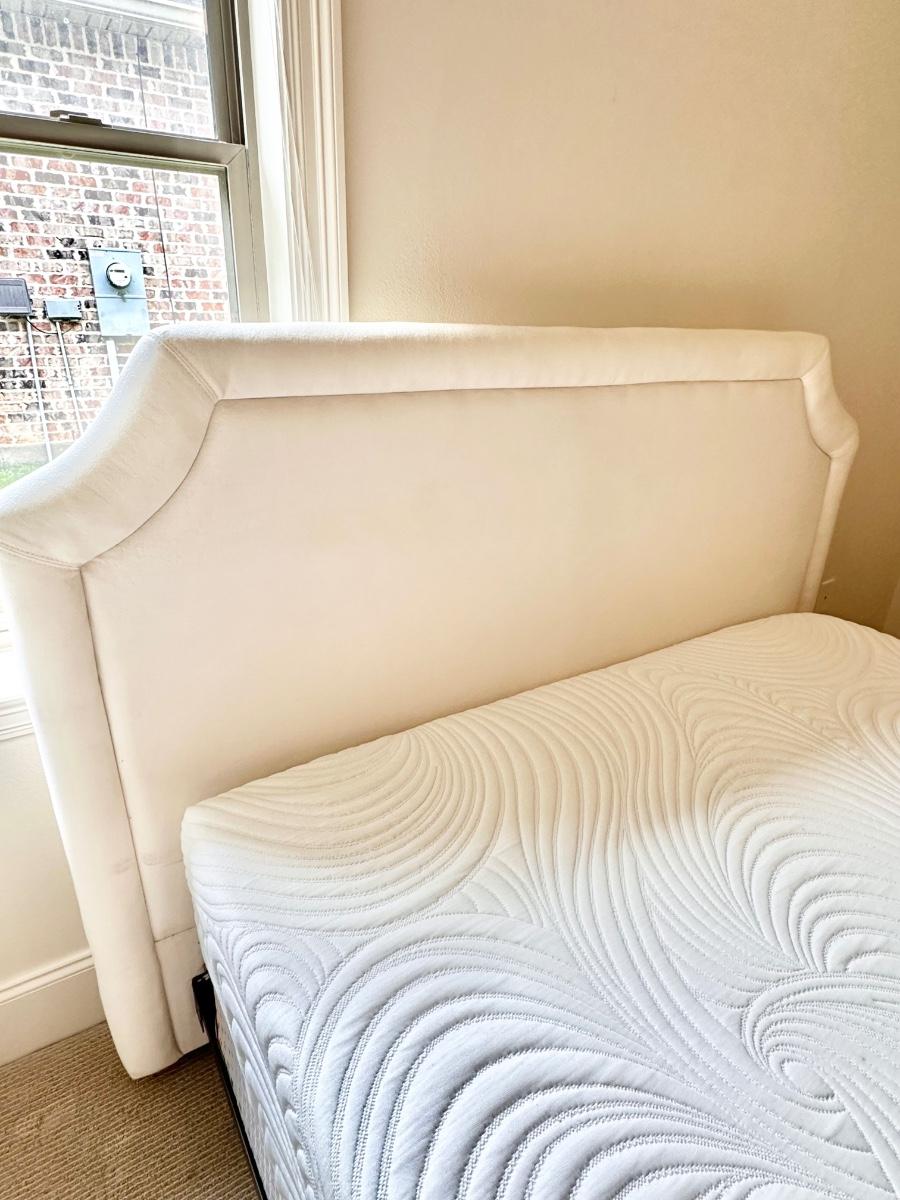 Color is off white/cream ~ headboard is 50.5” H~ headboard has a minor yellow stain that can barely be seen. (See photo) ~ Mattress is a soft memory foam and has been sanitized, disinfected and deodorized