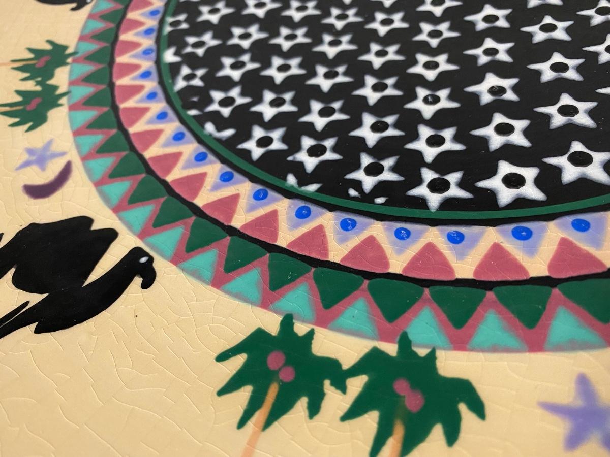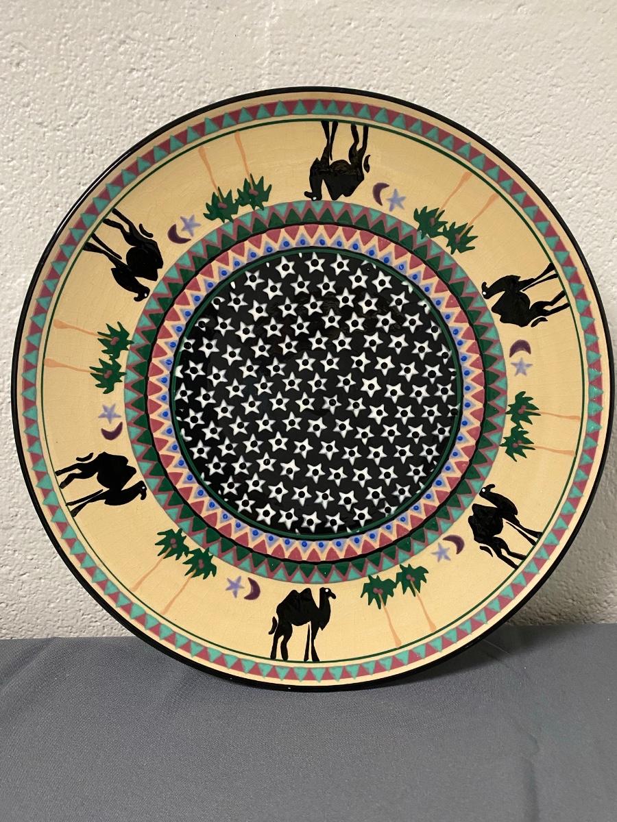 Large Decorative Circular Platter with camels and palm trees