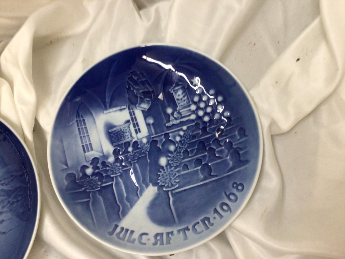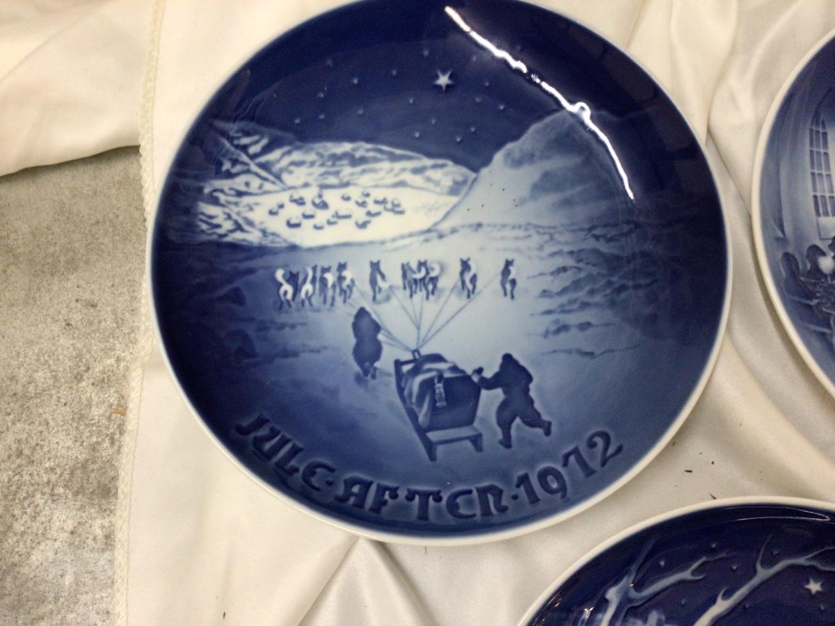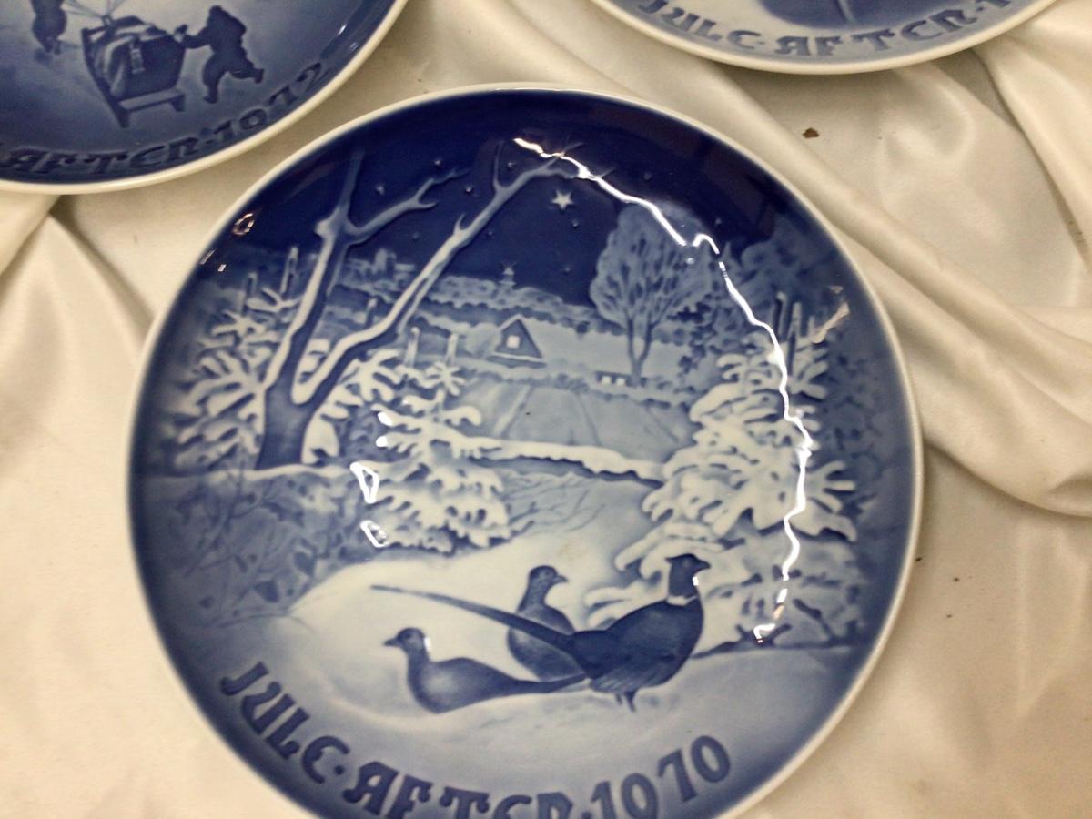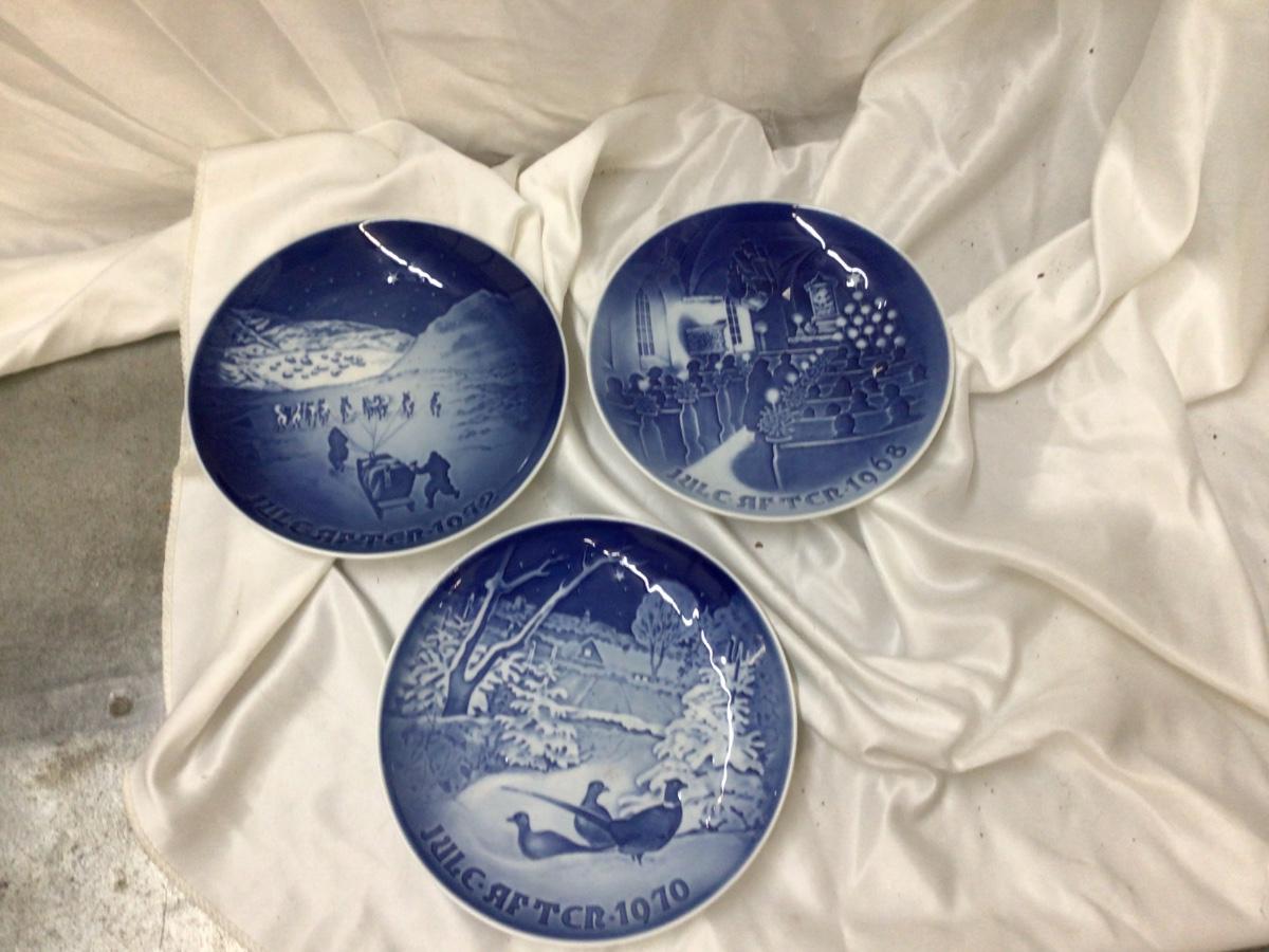 You get three flow blue Denmark Copenhagen collectible Christmas plates. You get 1968, 1970, 1972