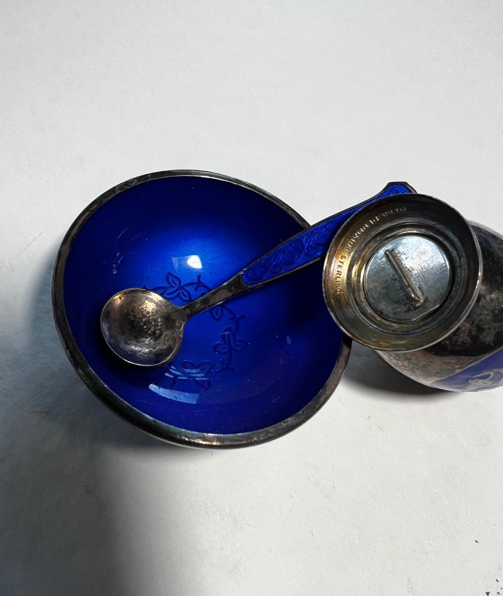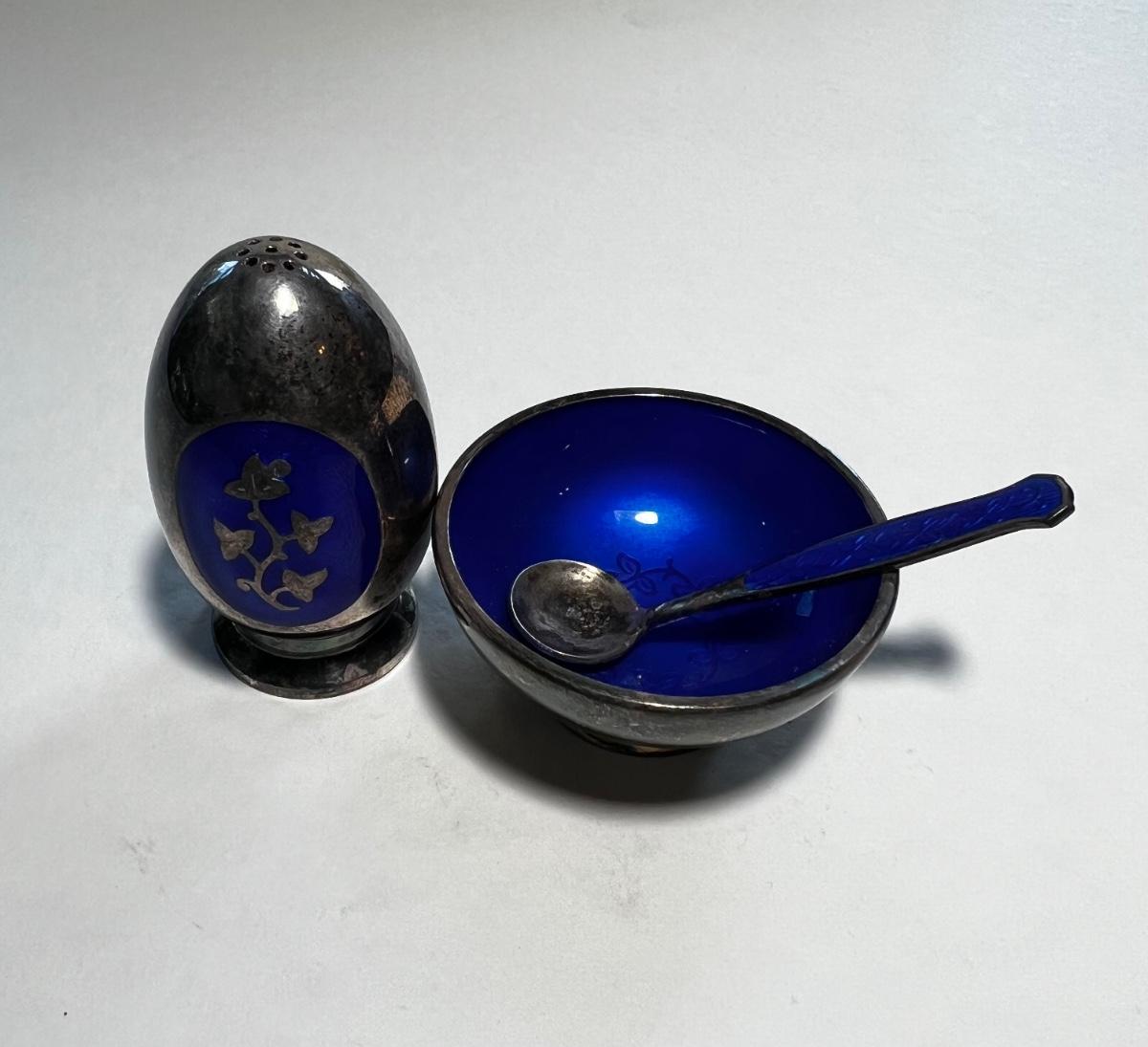 Denmark Danish Sterling Silver & Enamel (Blue) Salt& Pepper Shakers, V. B M&N
