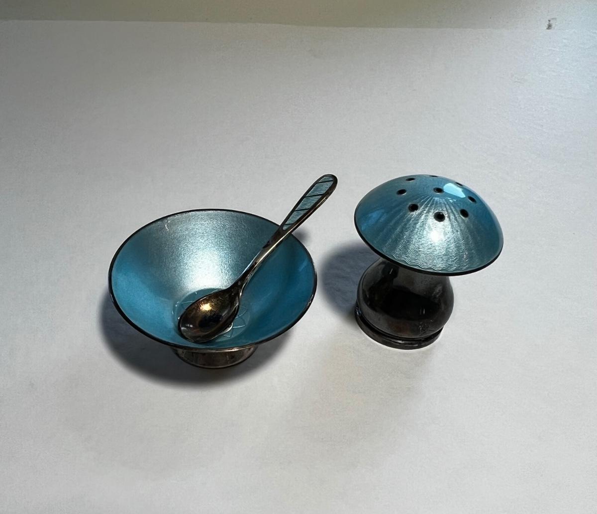 Denmark Danish Sterling Silver & Enamel (Blue) Salt& Pepper Shakers, V. B M&N