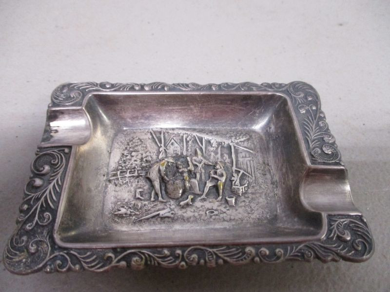Denmark Hans Jensen Ashtray Silver Plated Tavern Scene