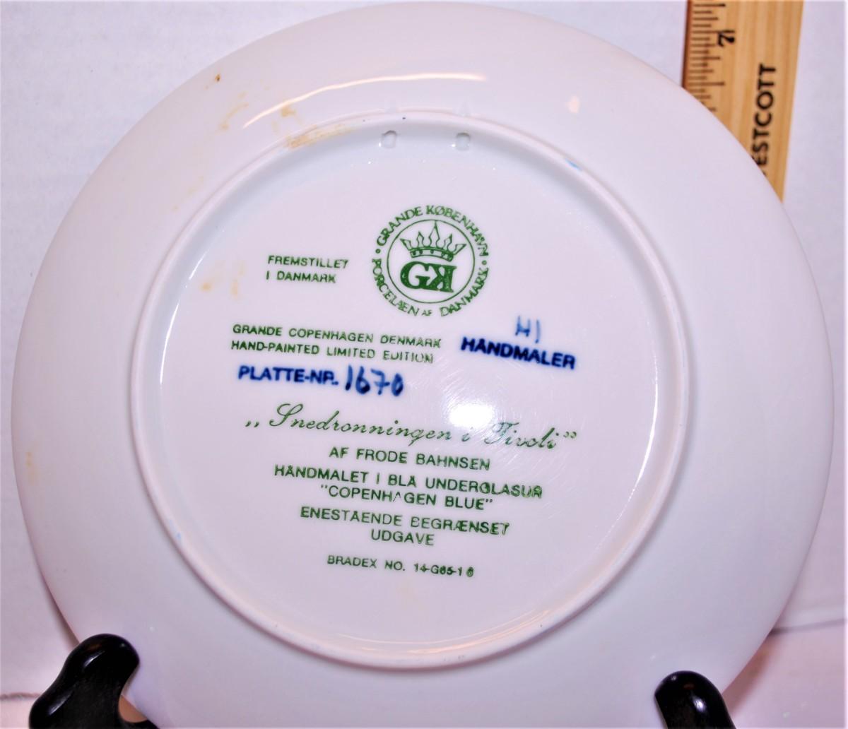 "The Snow Queen in the Tivoli" by Artist Frode Bahnsen - Includes: CERTIFICATE OF AUTHENTICITY, Plate #1670, 7" Diameter, Handpainted Copenhagen Denmark & Dated 1980