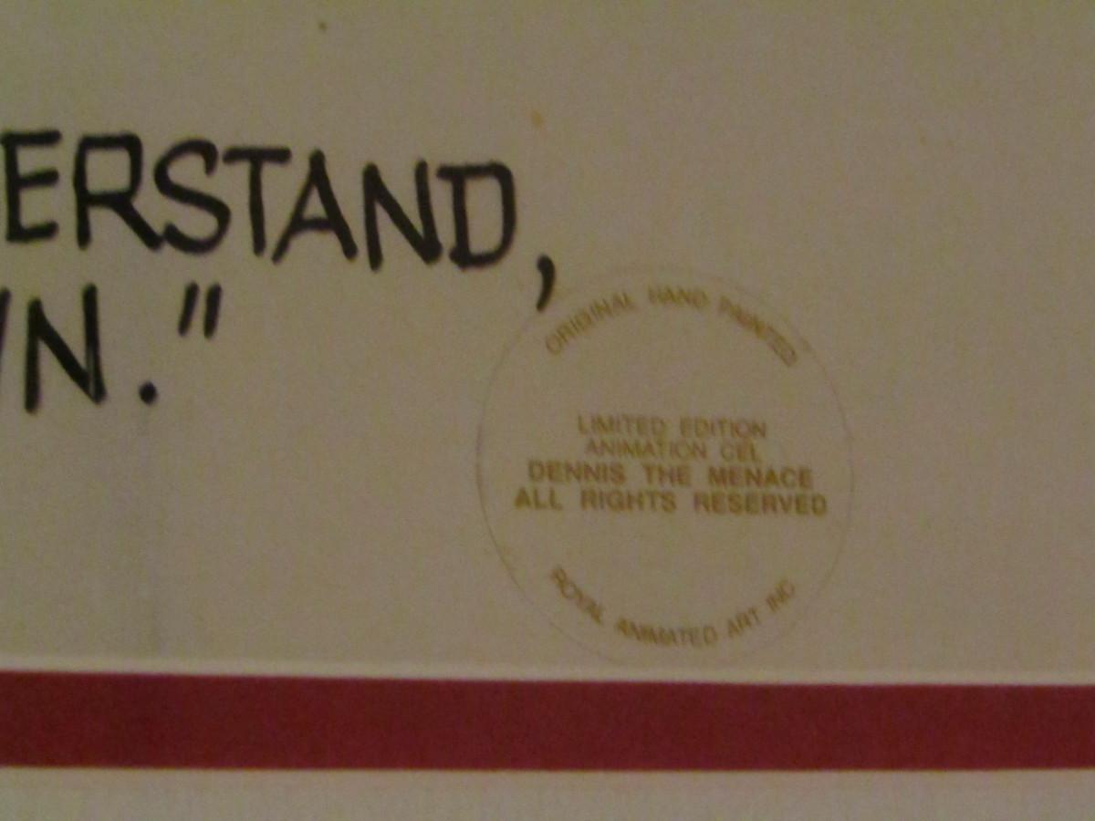 'Dennis the Menace' Limited Edition Hand Painted Animation Cel Signed by Artist- Approx 16 1/2" x 18 1/2"