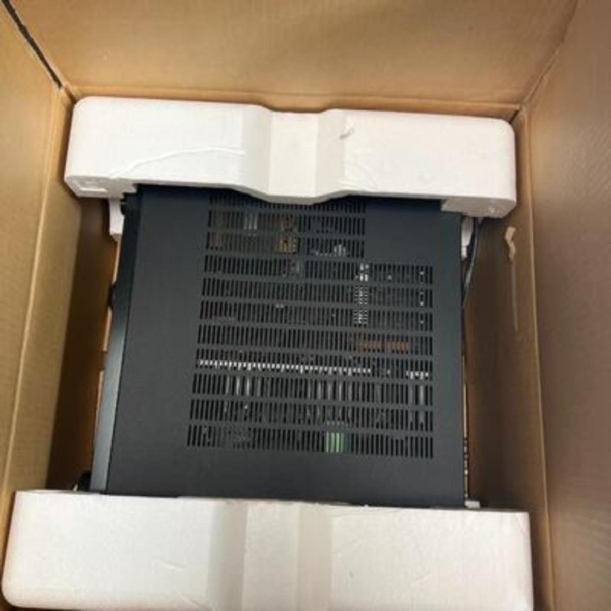 There is no significant damage to the body of the receiver and is in good condition. Has been plugged in and turned on, has not been tested with any speakers. Comes with box and accessories, check pictures for more details and for sizing.