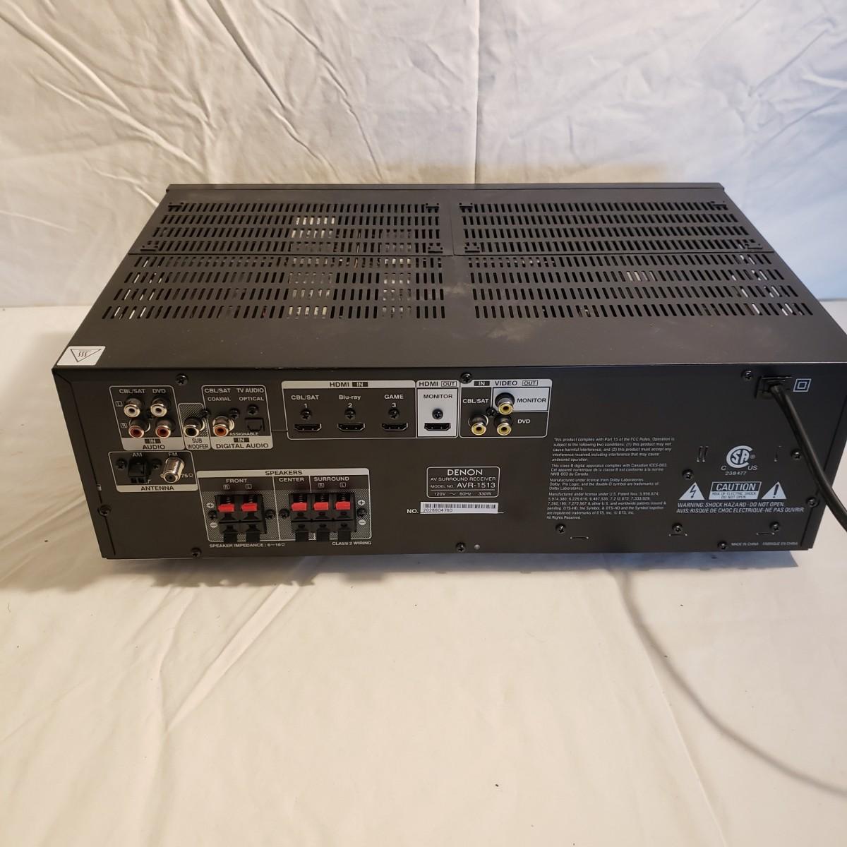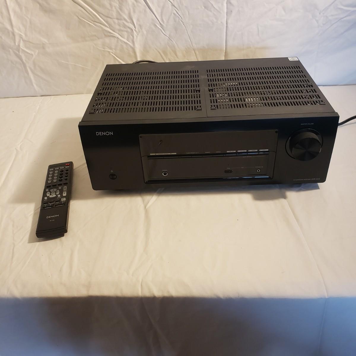 This is a Denon stereo receiver with working remote. Receiver powered on when plugged in, see picture. See pictures for details. Measures 17" x 11" x 6"H.
