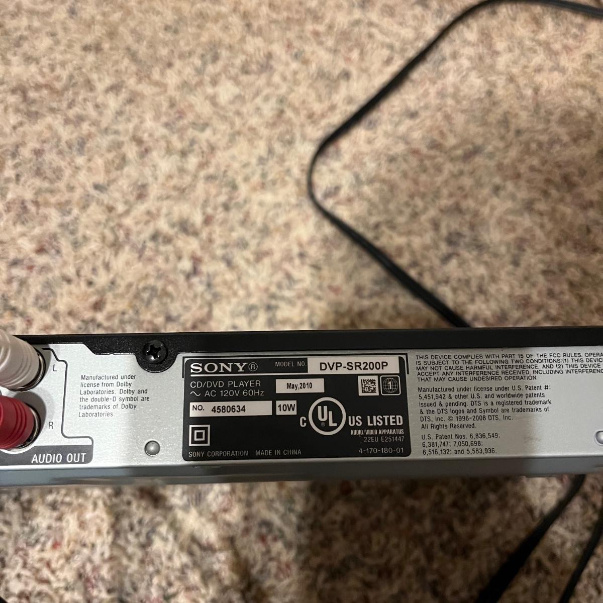 Lot includes a Denon stereo receiver model # DRA-335R and a Sony DVD player model # DVP-SR200P Receiver and DVD player powered on when tested.