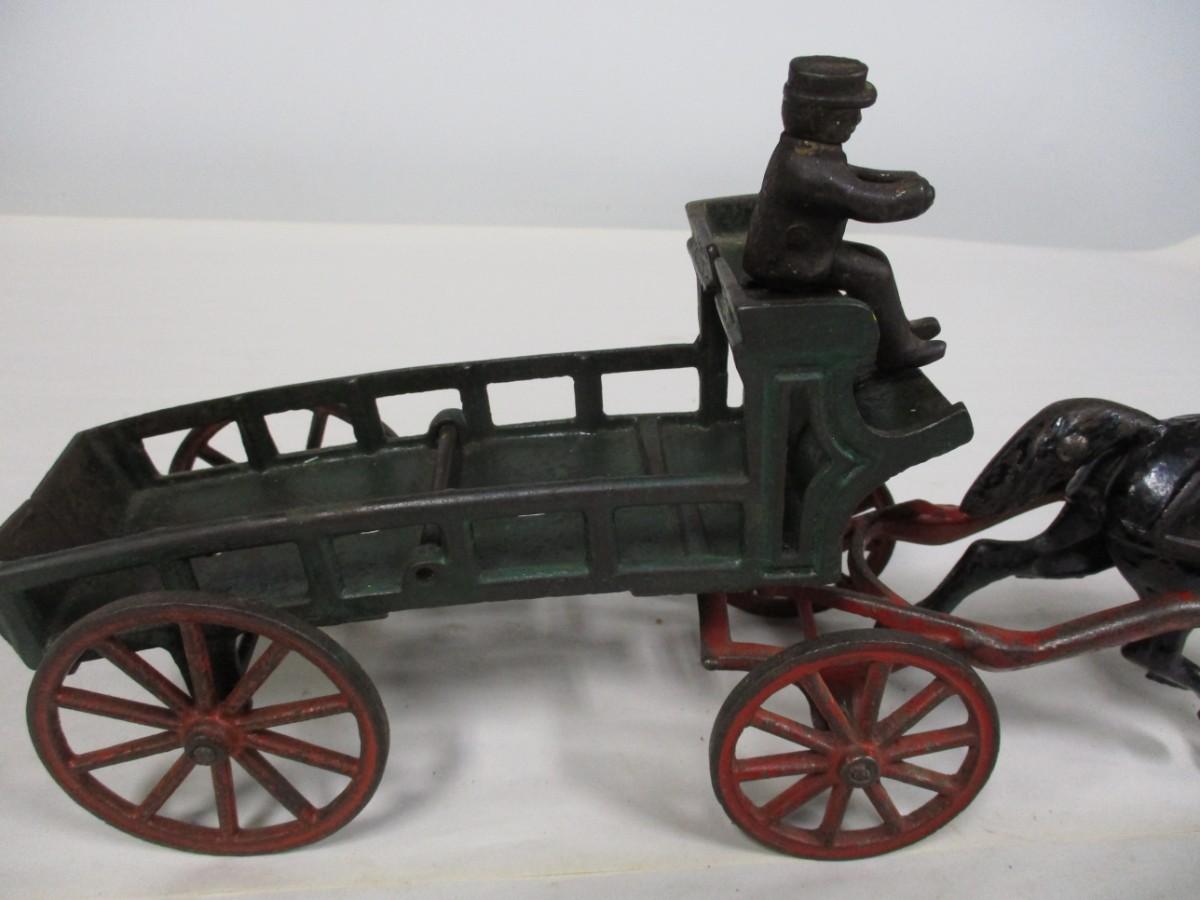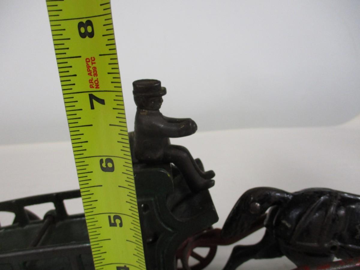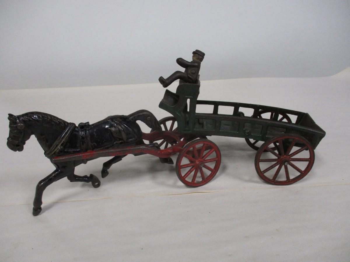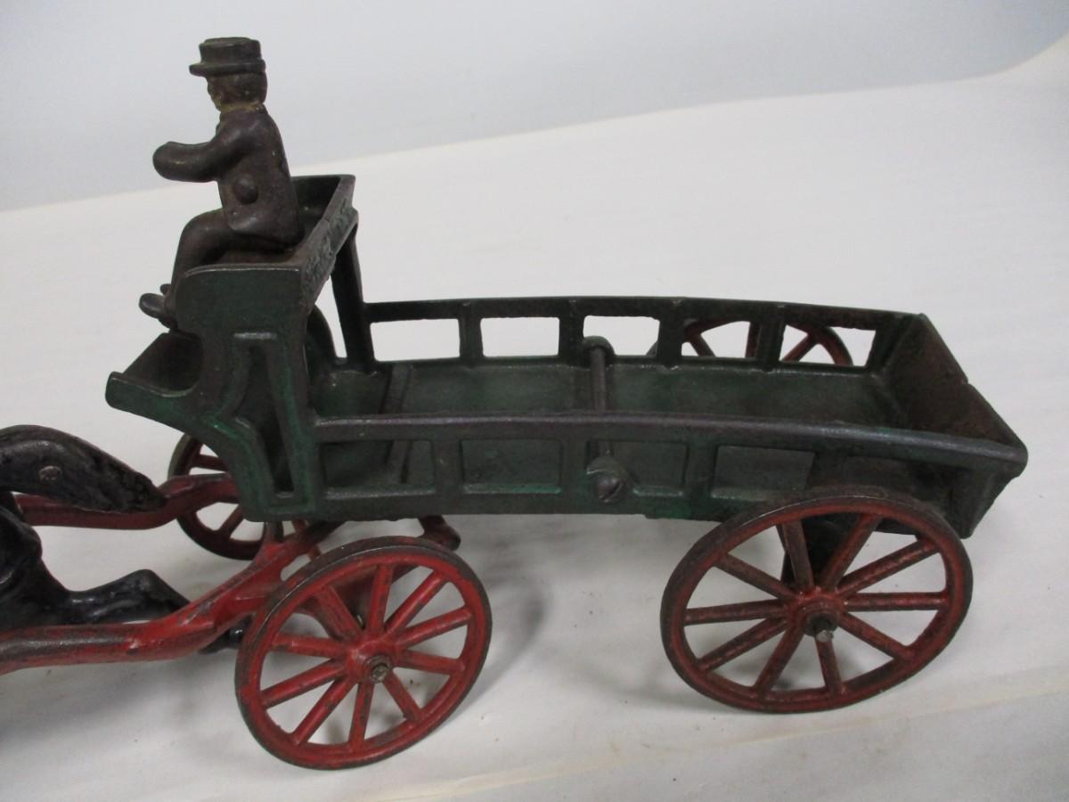 Vintage Dent Cast Iron Horse Drawn Dray Wagon with Driver