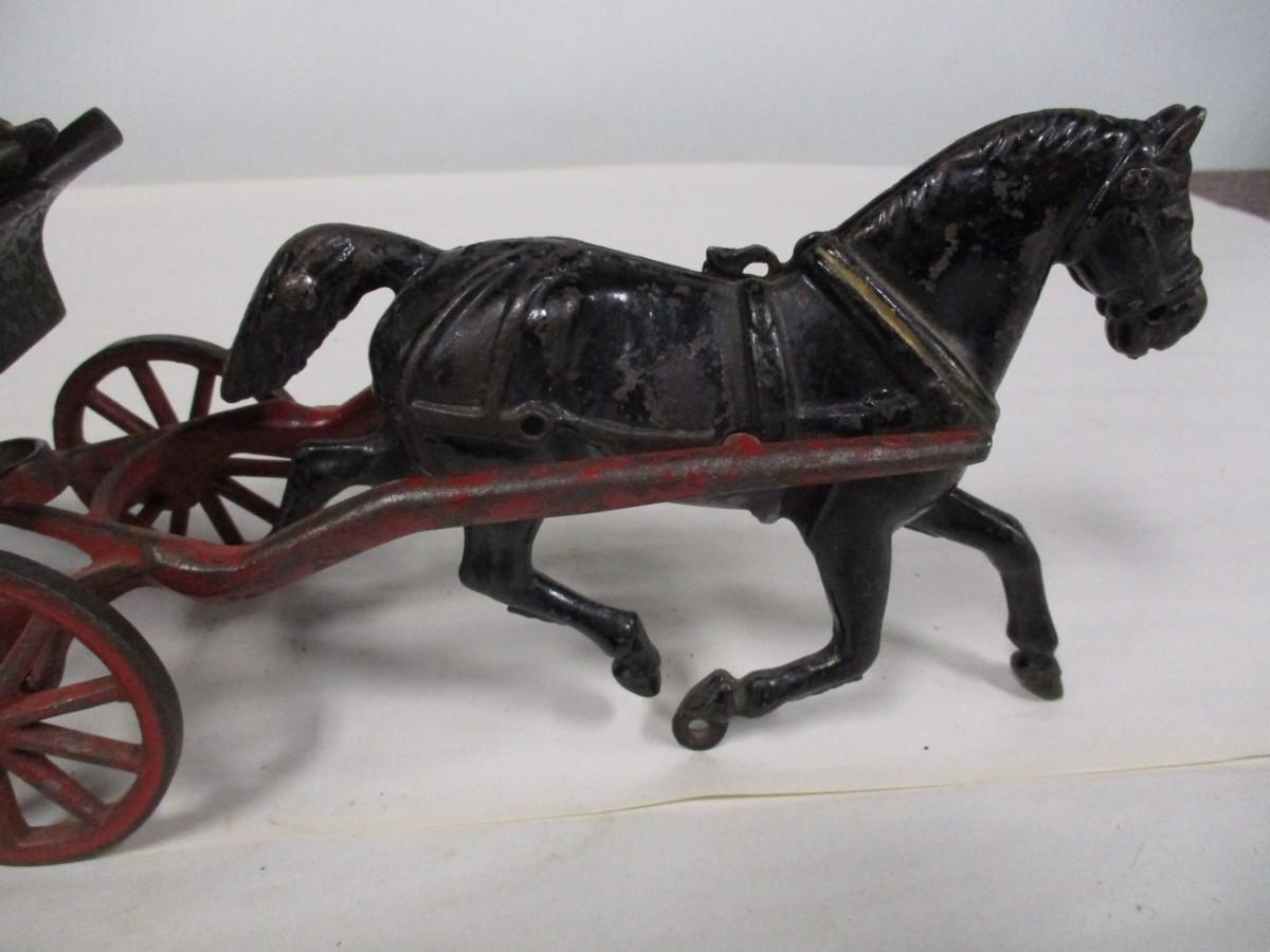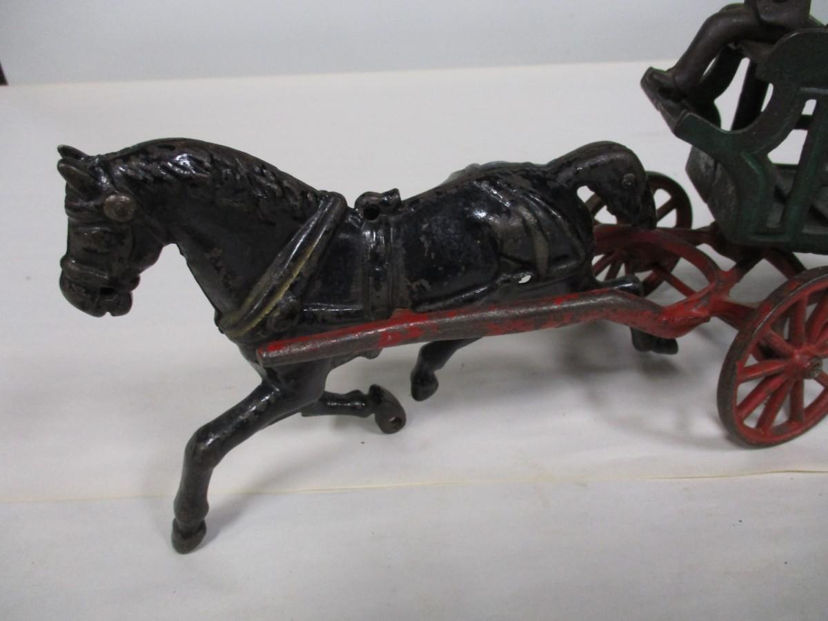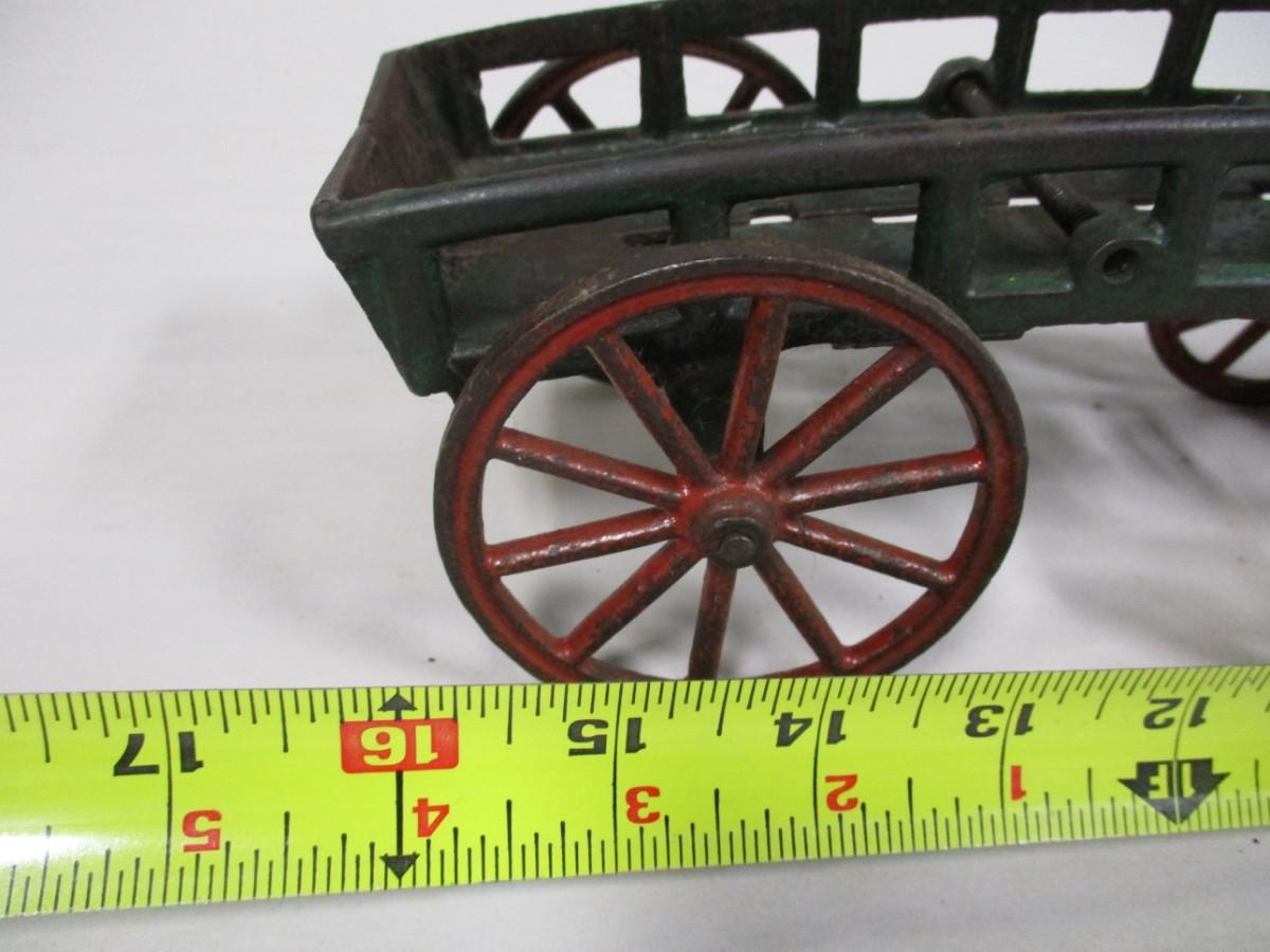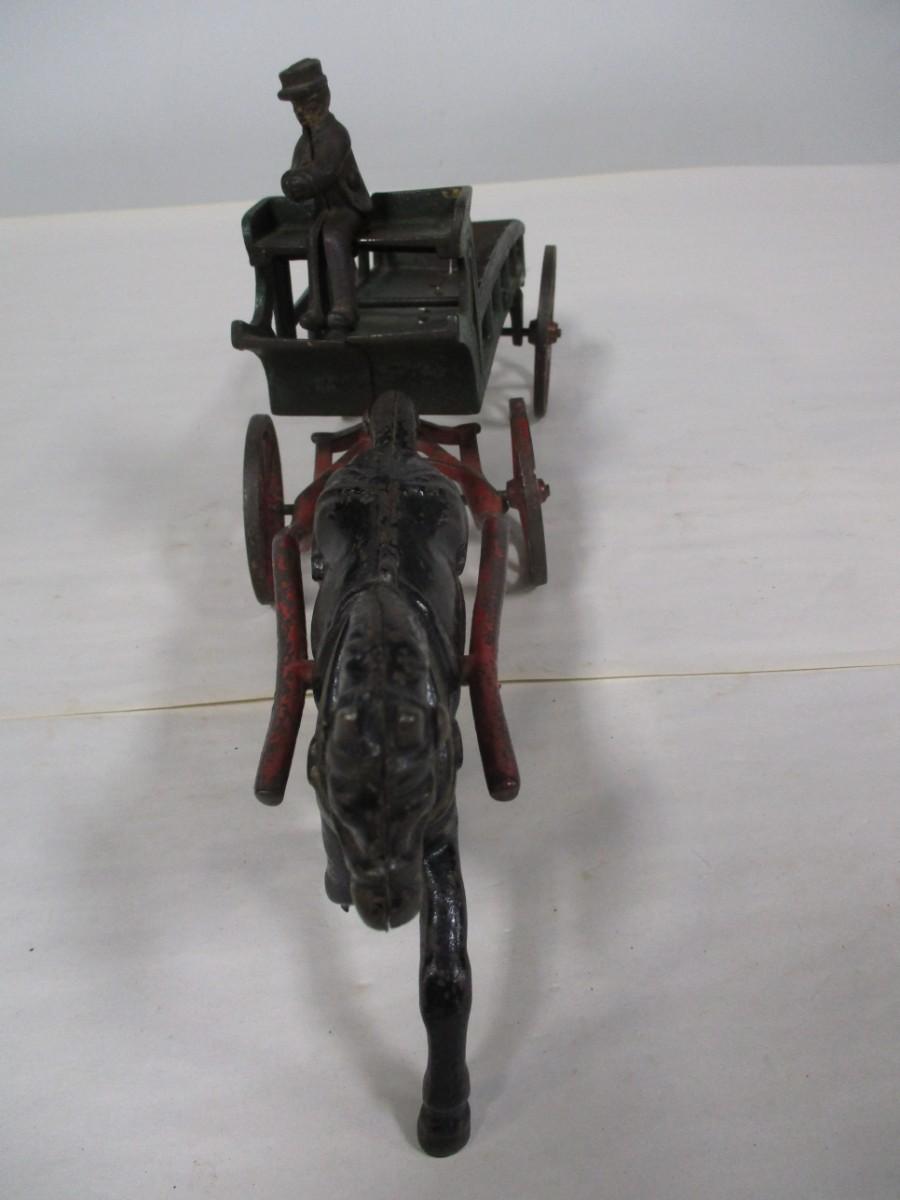 Vintage Dent Cast Iron Horse Drawn Dray Wagon with Driver