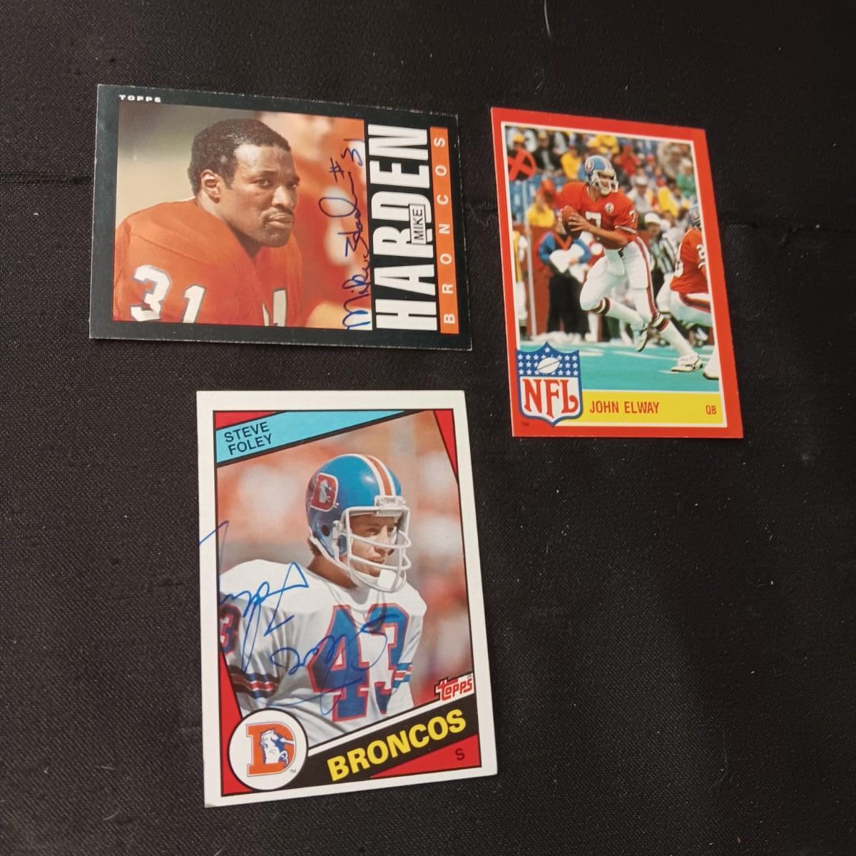 DENVER BRONCOS MIKE HARDEN & STEVE FOLEY AUTOGRAPHED CARDS ALSO JOHN ELWAY CARD