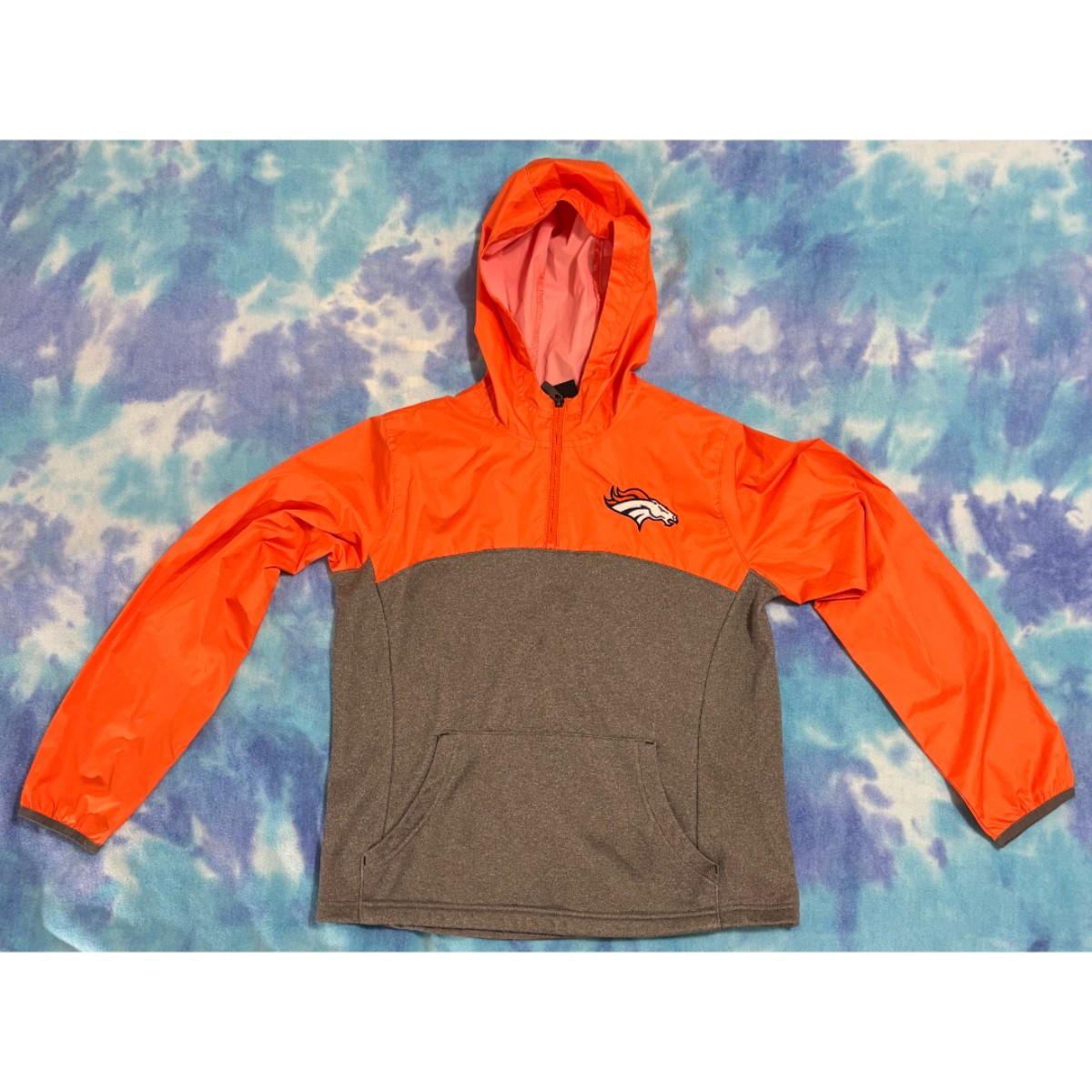 Denver Broncos Youth Medium (10/12) Windbreaker Kangaroo Pocket NFL Orange Blue
