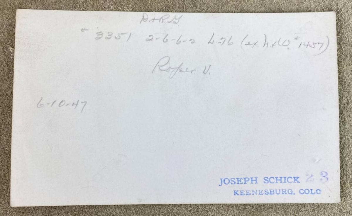 DENVER RIO GRANDE LOCOMOTIVE #3351 JOSEPH SCHICK PHOTO 1947
