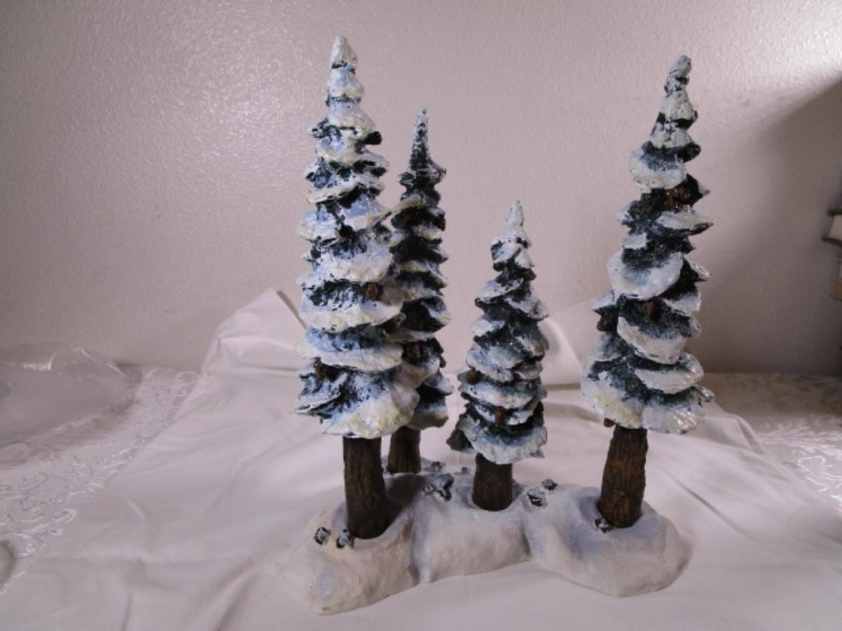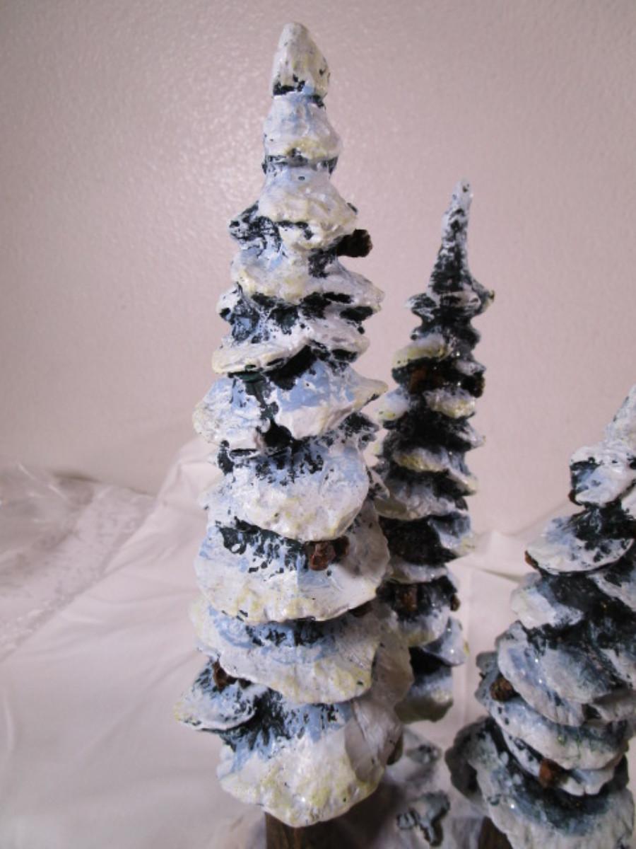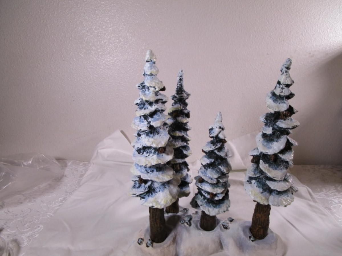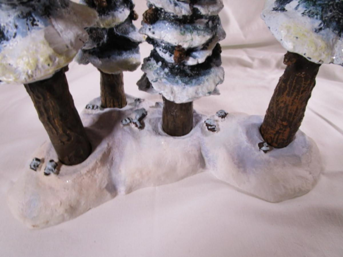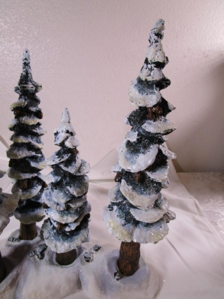 See pictures, tallest tree is 11", base is 9-3/4" x 4-1/2"