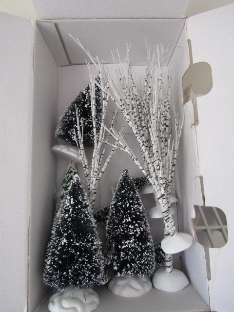 Department 56- Assortment of Winter Birch (6 pcs) and Pine Trees