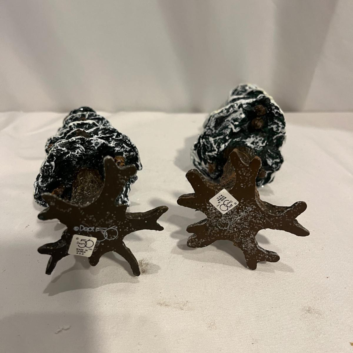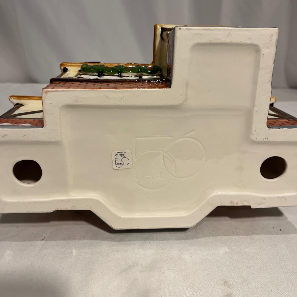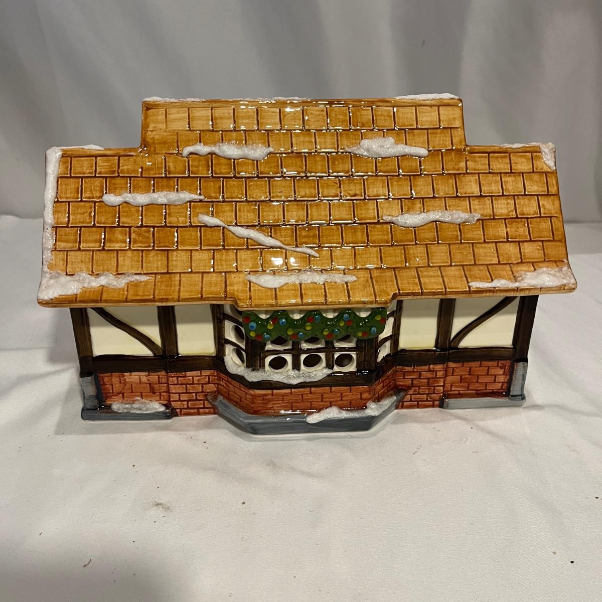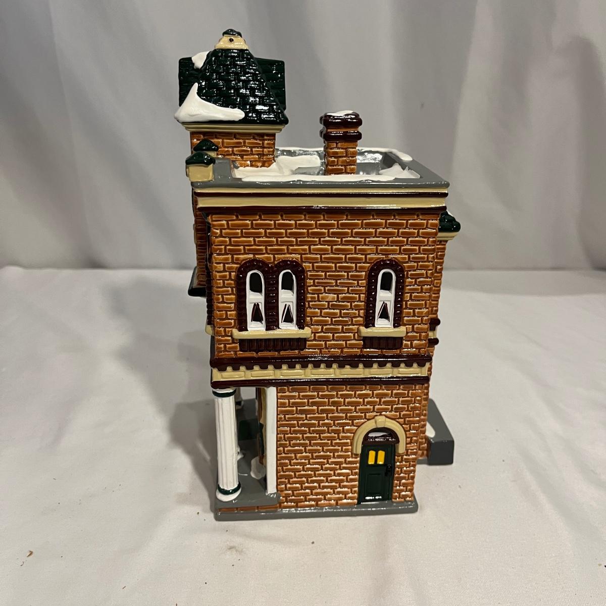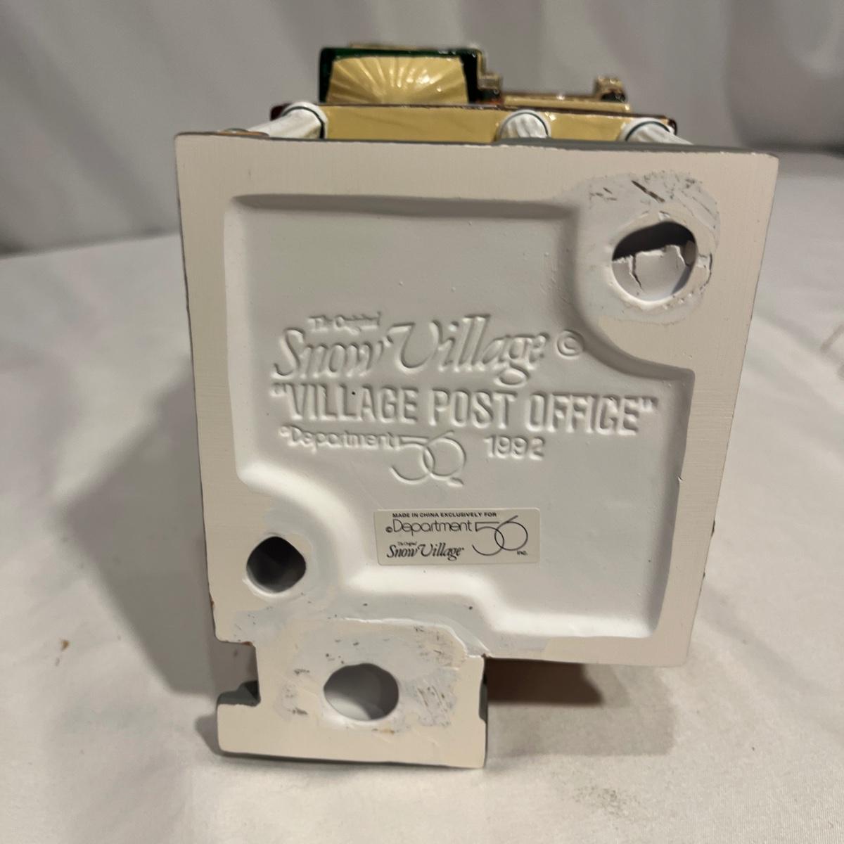 This collection of Department 56 houses includes locomotive and two cars, car, nativity piece, Gothic Church, two Pole Pine Trees, Snow Village, Grocery store, Christmas tree, Village Post Office and more. Also includes a selection of miniature trees by Department 56 and more trees. Tallest building measures 8” x 6.5” x 10”H. All lights powered on when plugged in.