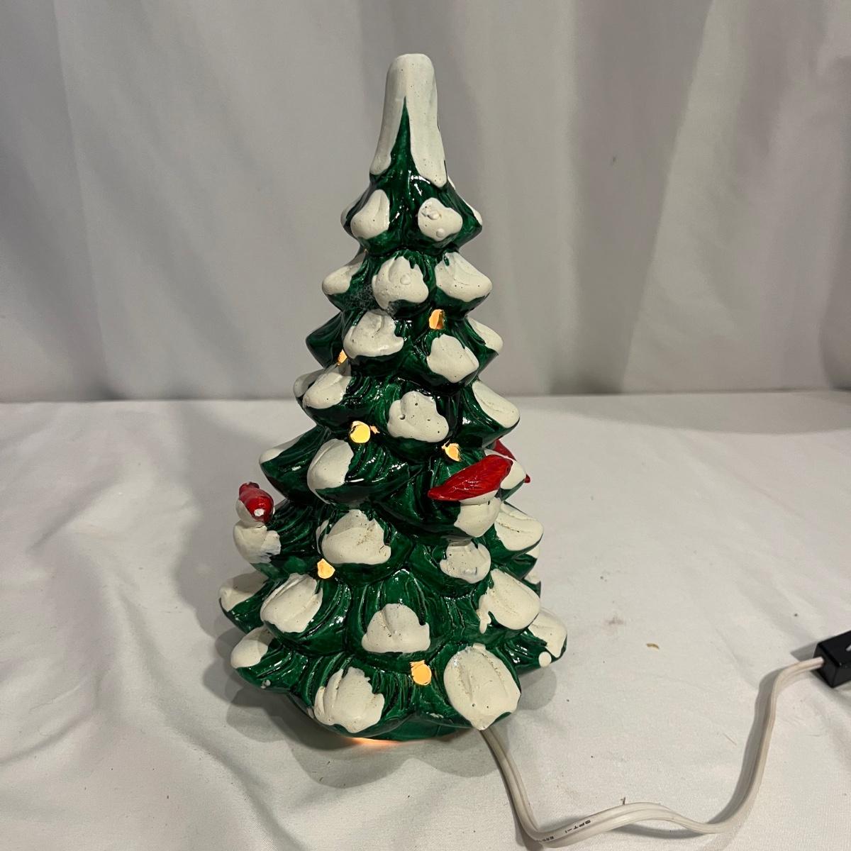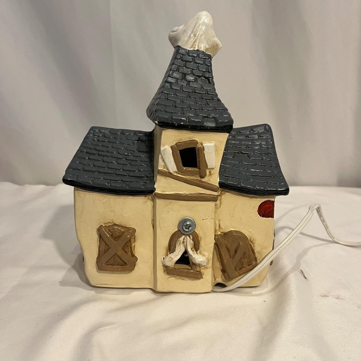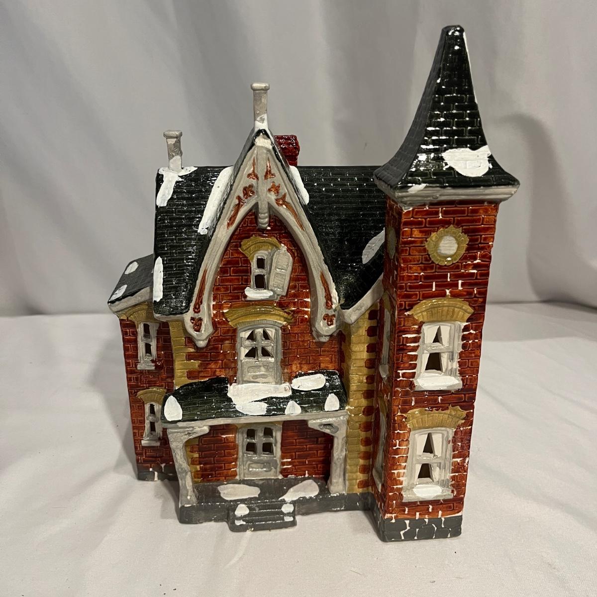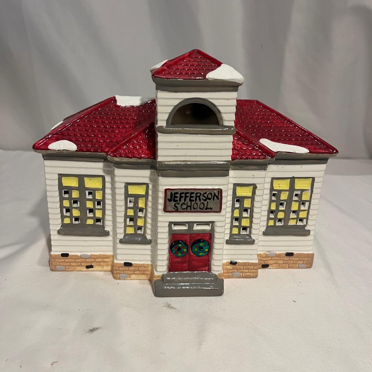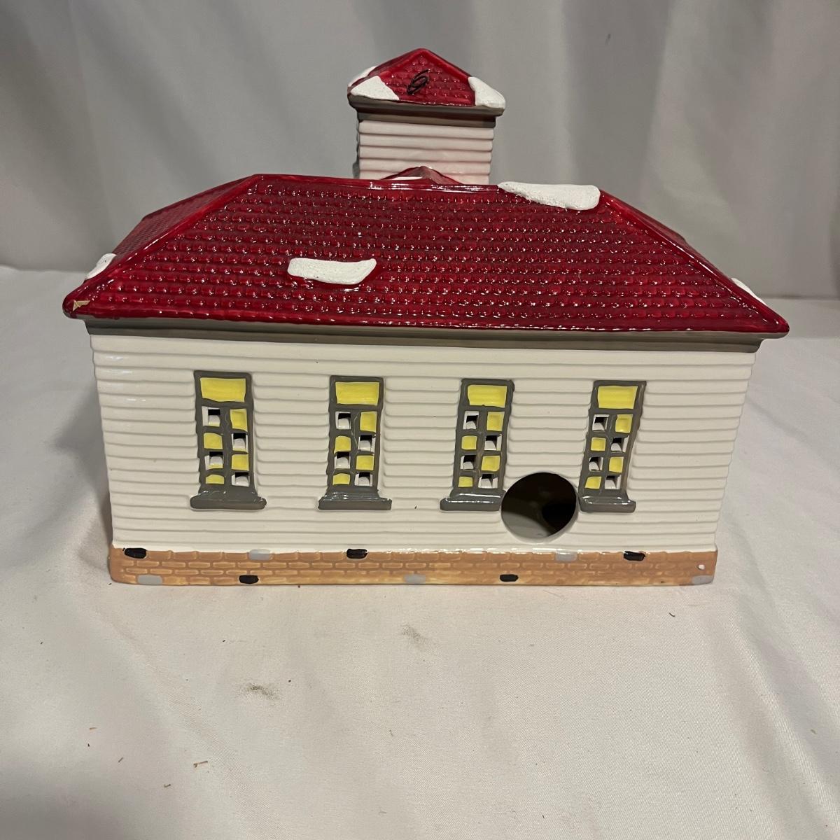 This collection of Department 56 houses includes locomotive and two cars, car, nativity piece, Gothic Church, two Pole Pine Trees, Snow Village, Grocery store, Christmas tree, Village Post Office and more. Also includes a selection of miniature trees by Department 56 and more trees. Tallest building measures 8” x 6.5” x 10”H. All lights powered on when plugged in.