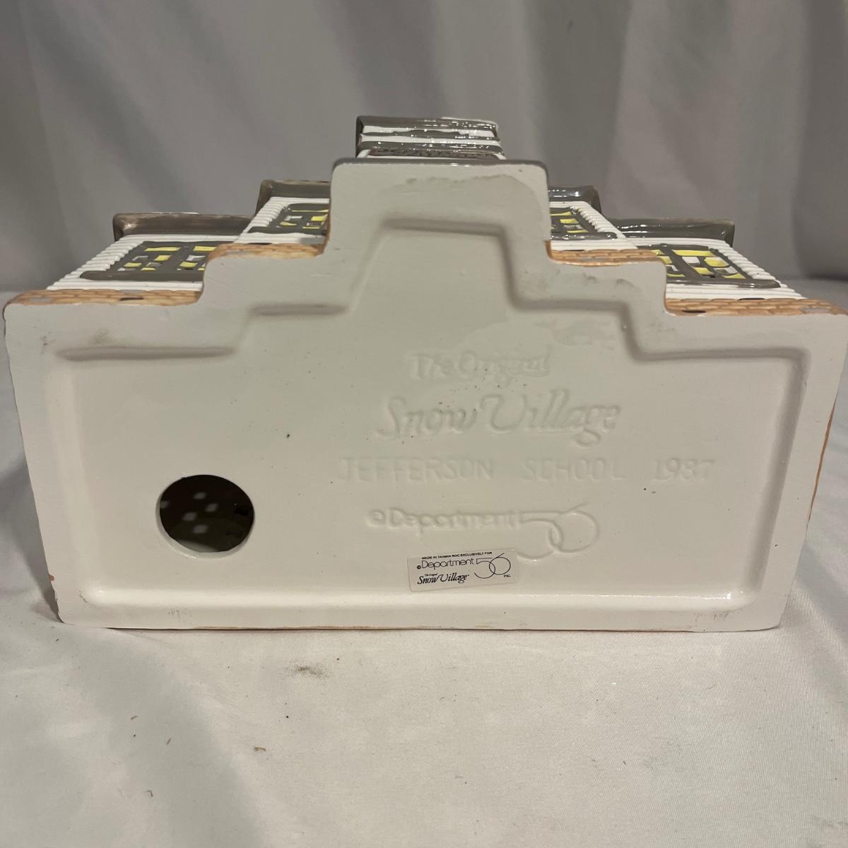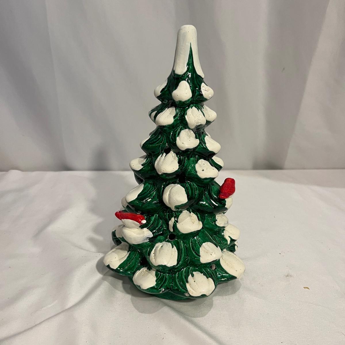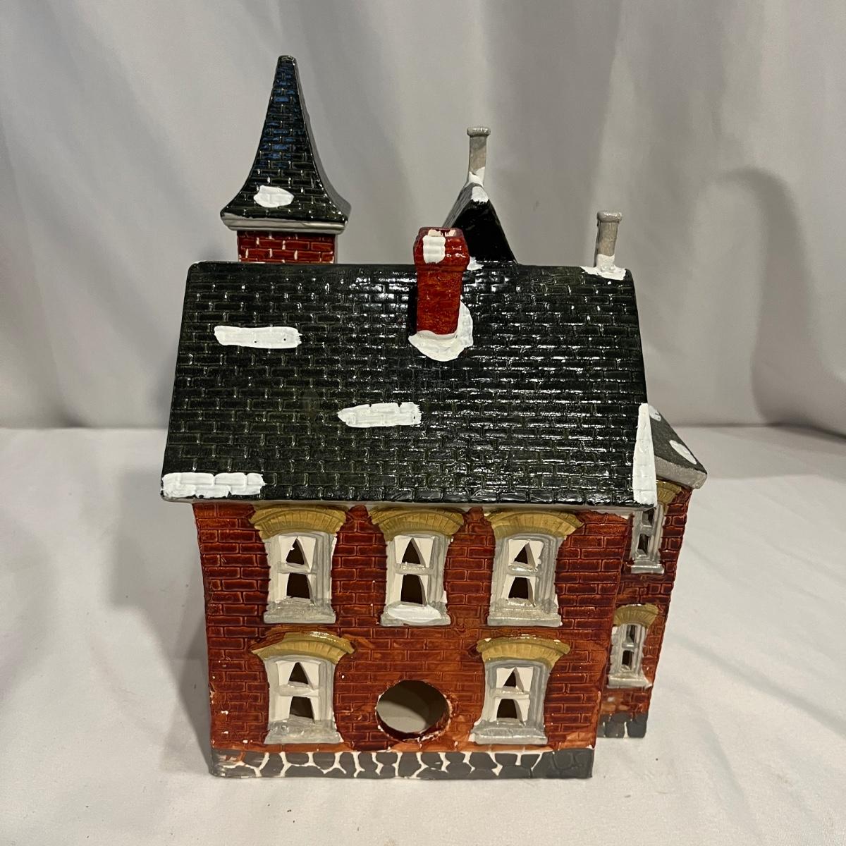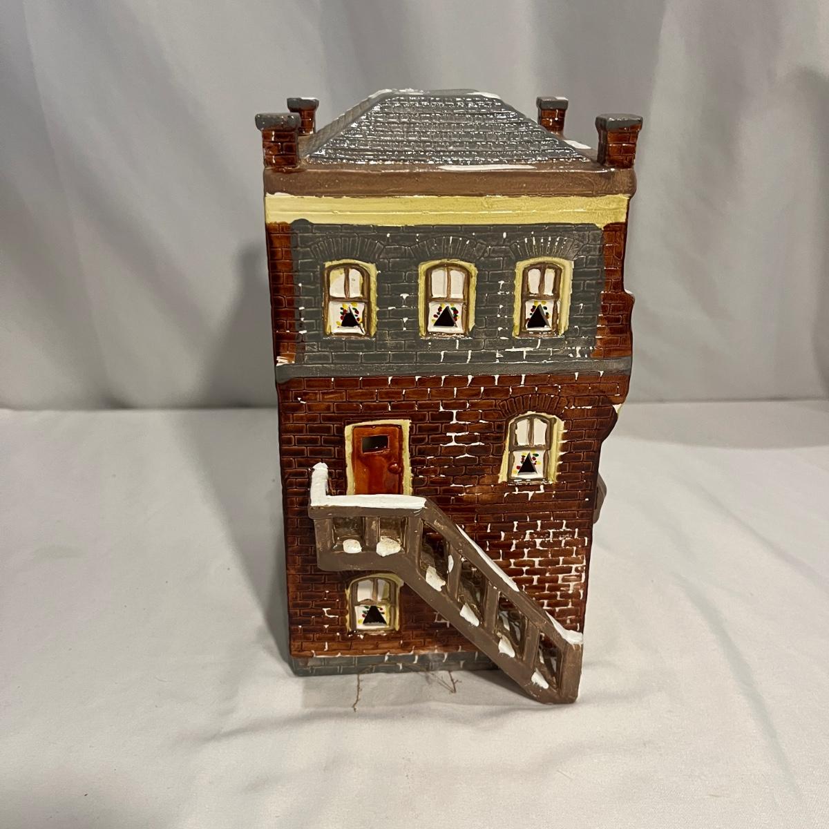 This collection of Department 56 houses includes locomotive and two cars, car, nativity piece, Gothic Church, two Pole Pine Trees, Snow Village, Grocery store, Christmas tree, Village Post Office and more. Also includes a selection of miniature trees by Department 56 and more trees. Tallest building measures 8” x 6.5” x 10”H. All lights powered on when plugged in.