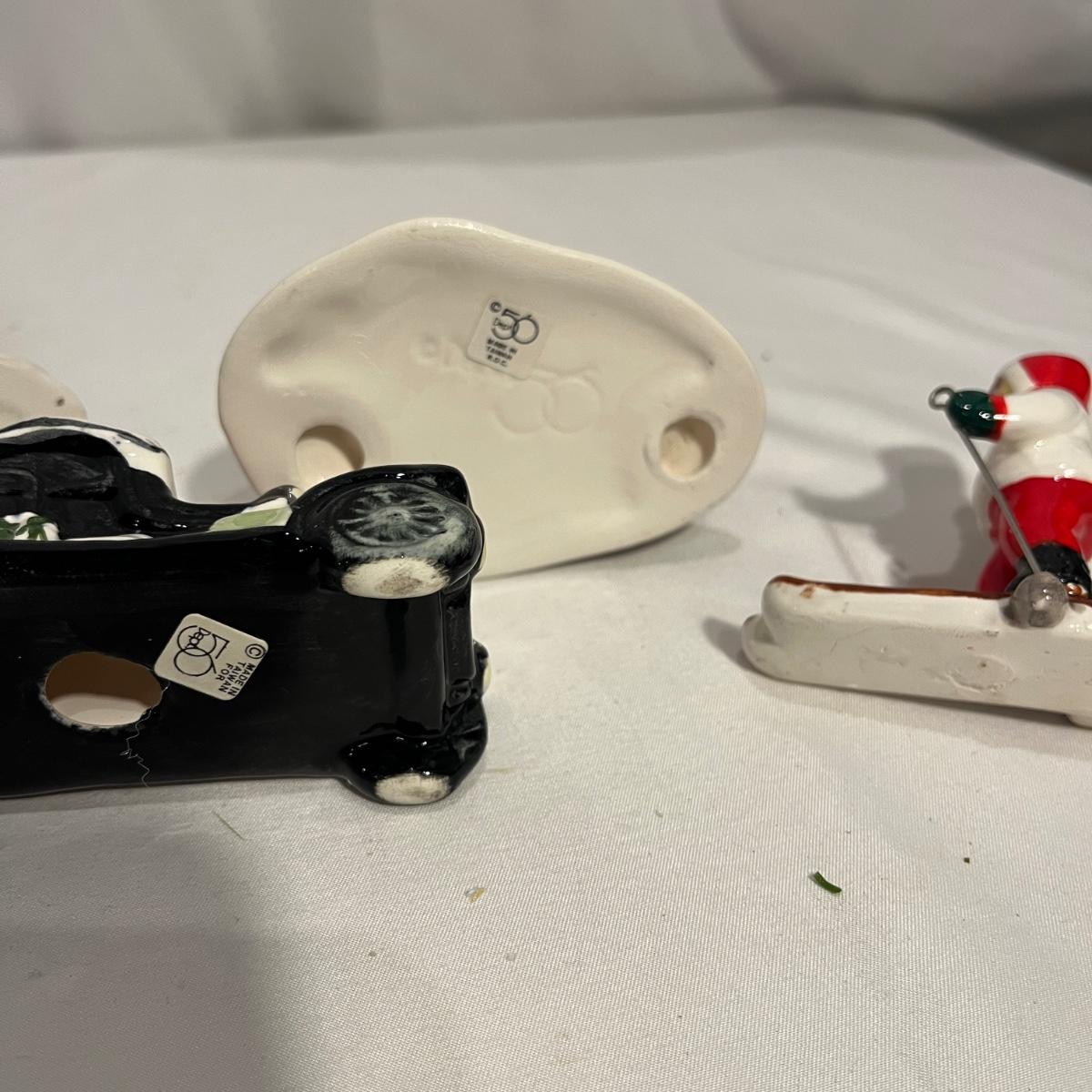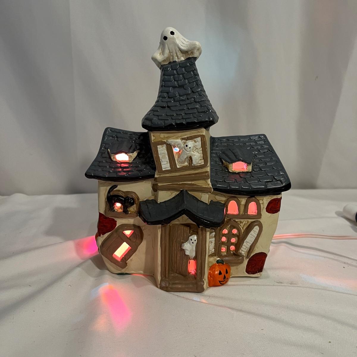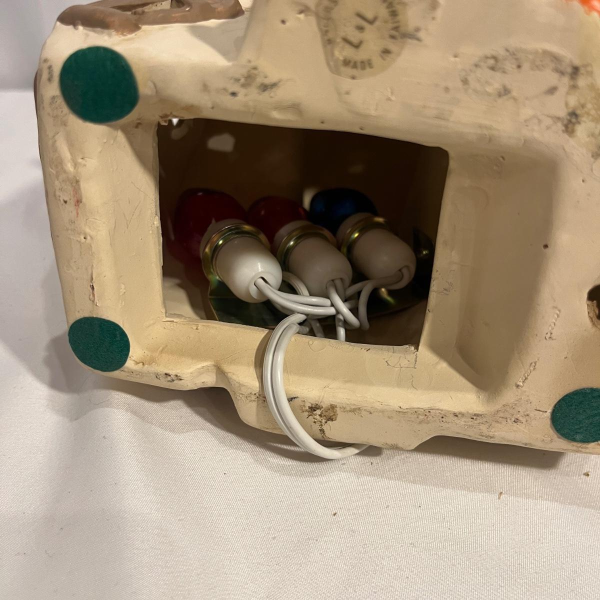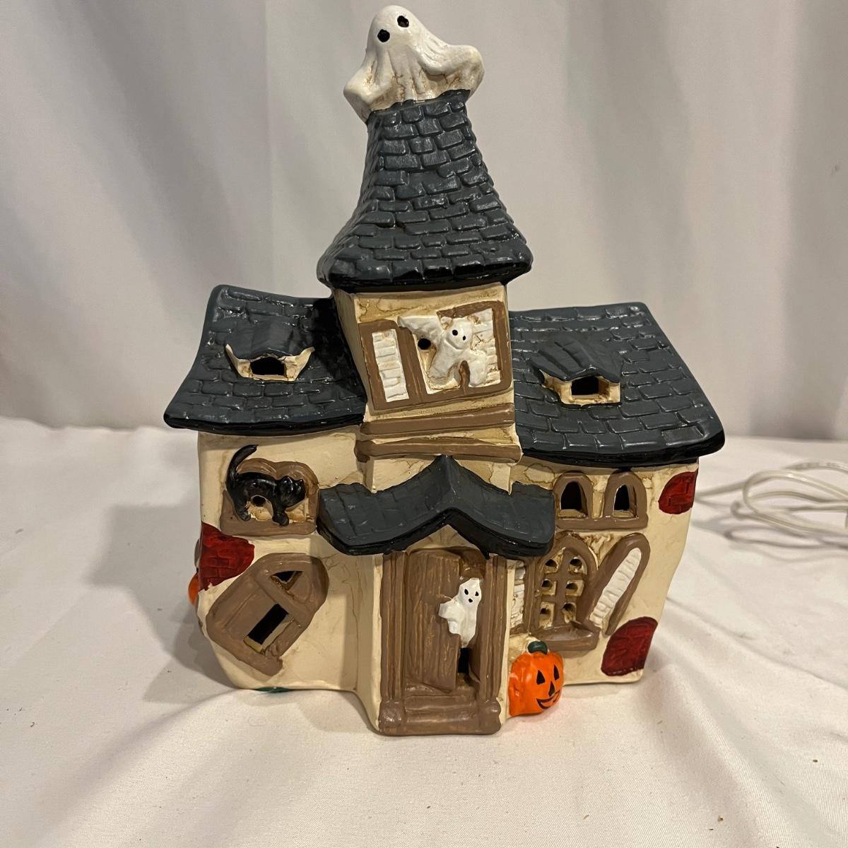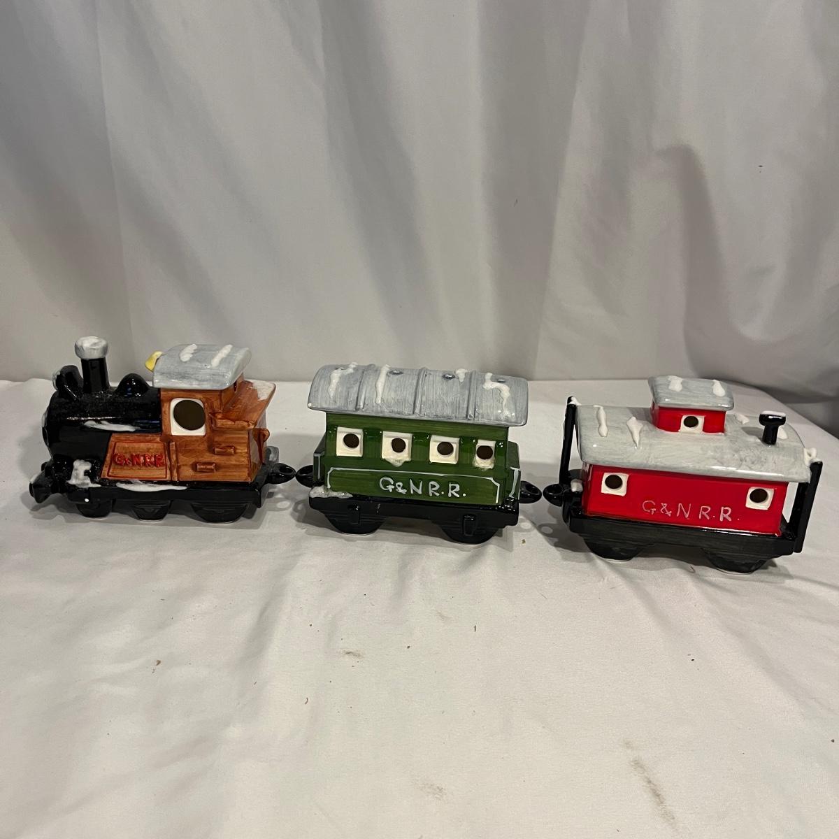 This collection of Department 56 houses includes locomotive and two cars, car, nativity piece, Gothic Church, two Pole Pine Trees, Snow Village, Grocery store, Christmas tree, Village Post Office and more. Also includes a selection of miniature trees by Department 56 and more trees. Tallest building measures 8” x 6.5” x 10”H. All lights powered on when plugged in.