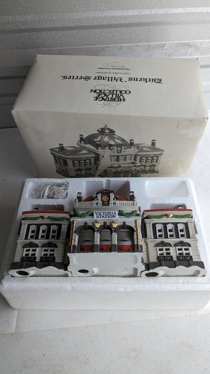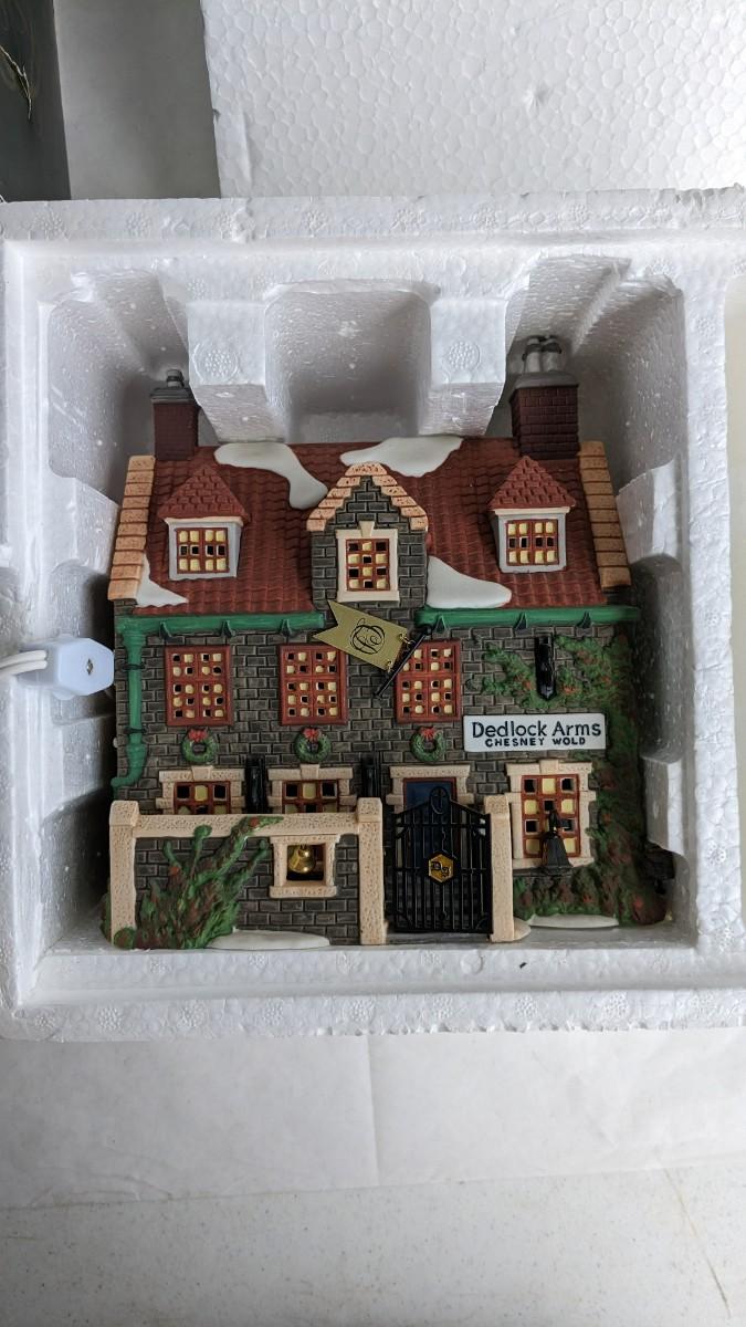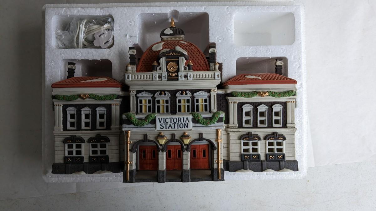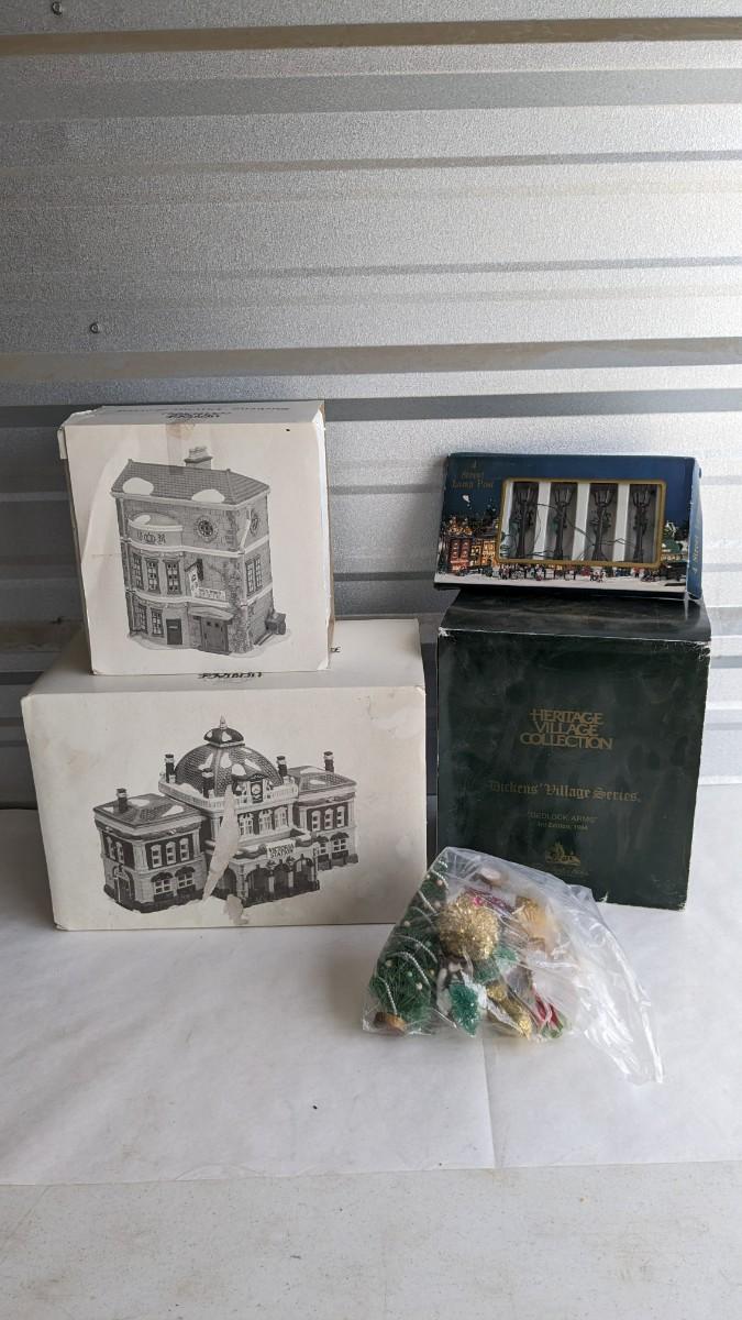 Includes in original box "Victoria Station" "Kings Road Post Office", Globe Hall, and 1994 Deadlock Arms. As well as off brand street lamps and vintage bottle brush trees + small accessories. All apprear to be in great shape. 2616