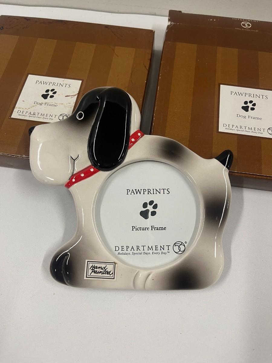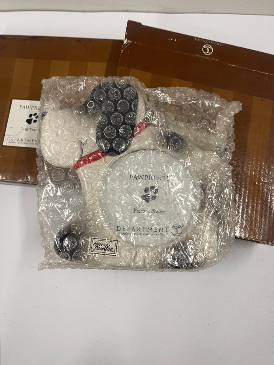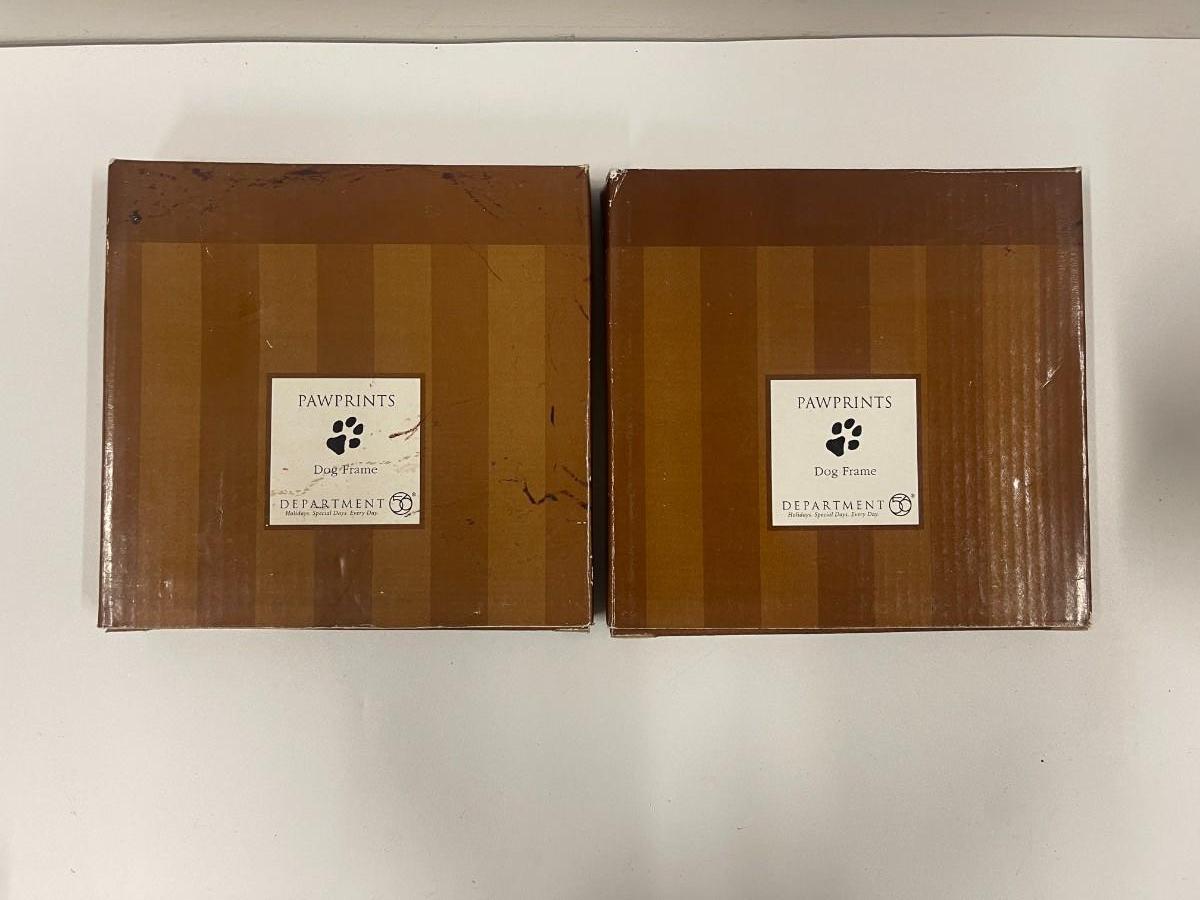 Department 56 "Pawprints" dog frames. There are two, both new in the boxes. One of the boxes has damage. Frames are unused and in original packaging.
