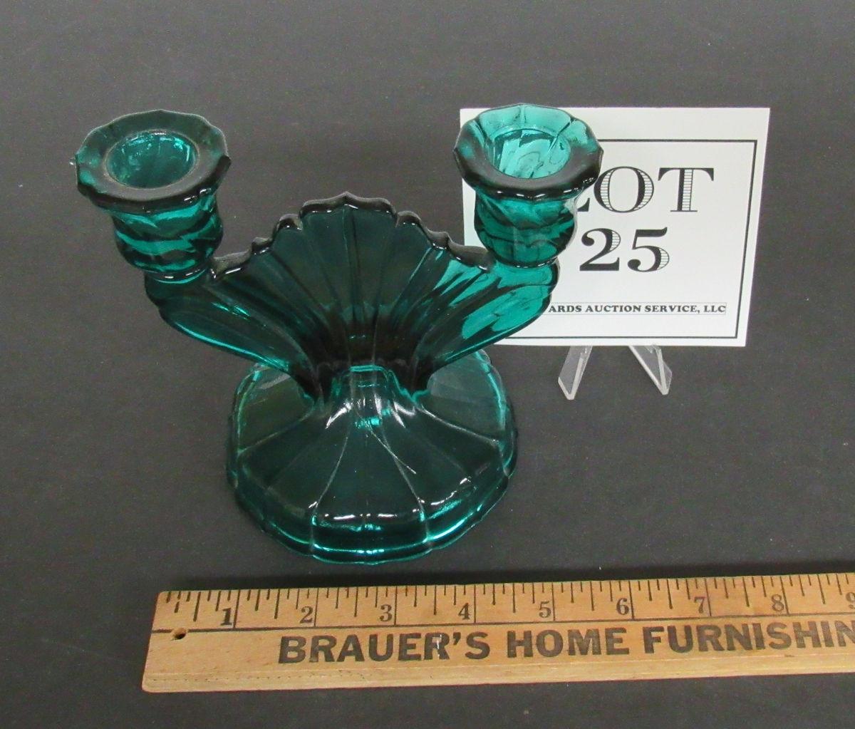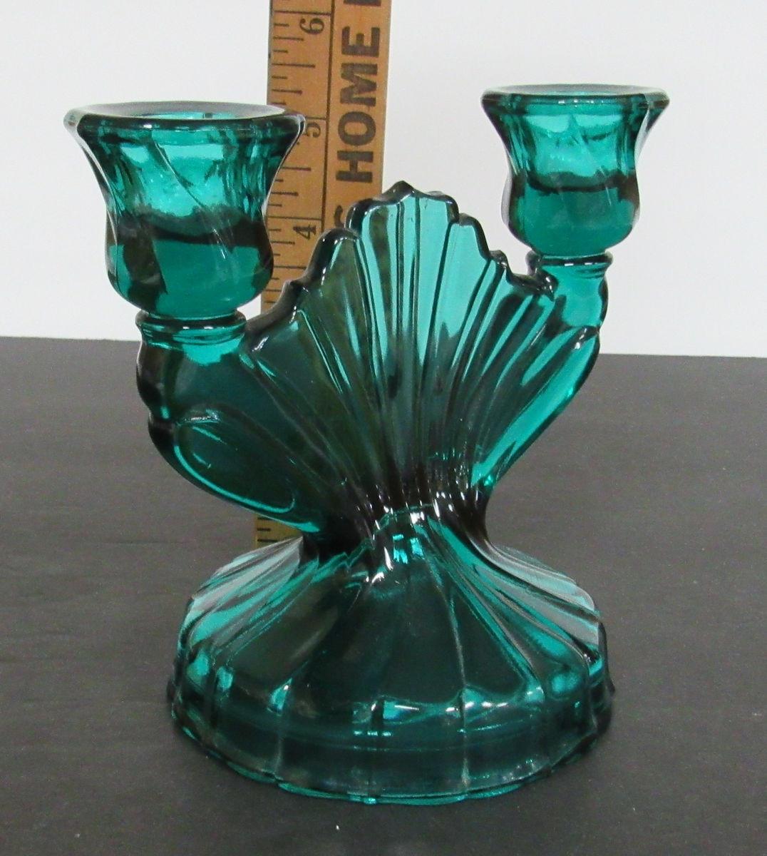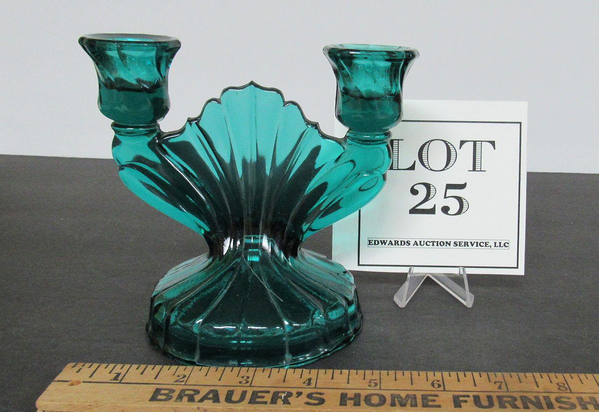 Depression Era Jeanette Swirl Ultramarine Double Candle Holder