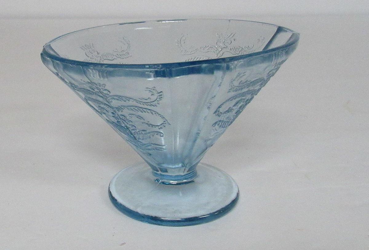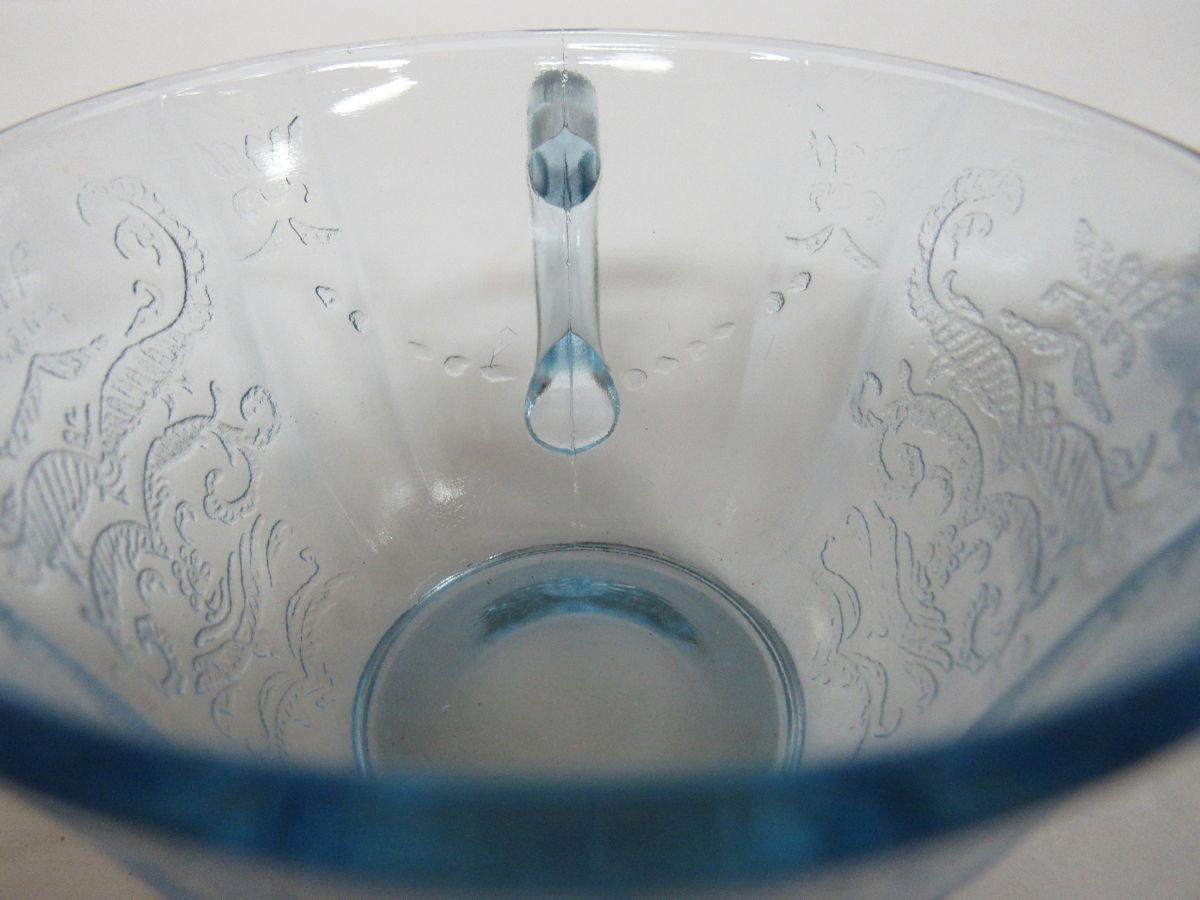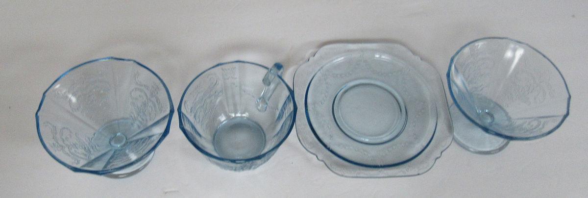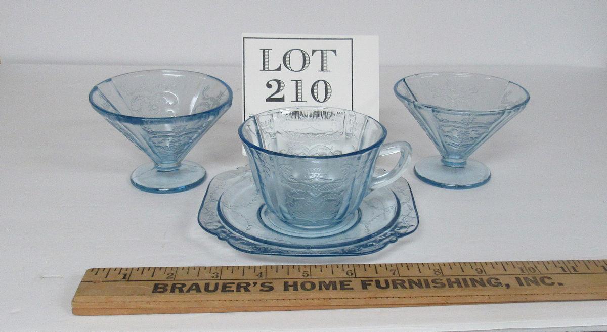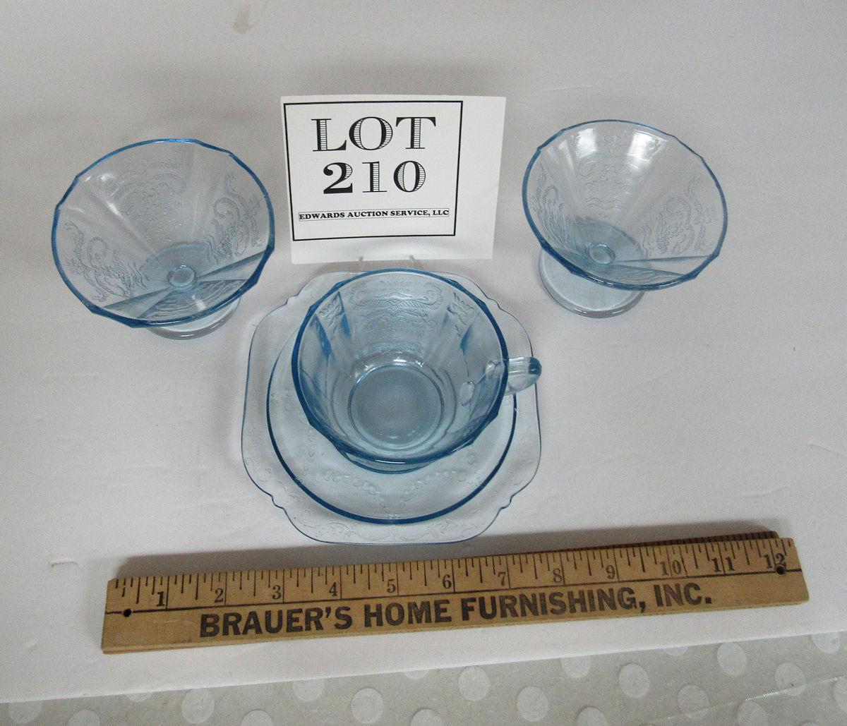 Depression Federal Glass Blue Madrid 2 Sherberts and Cup and Saucer, Original, Not Repro