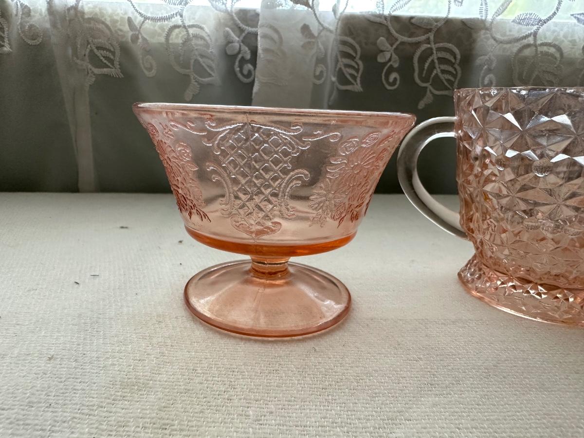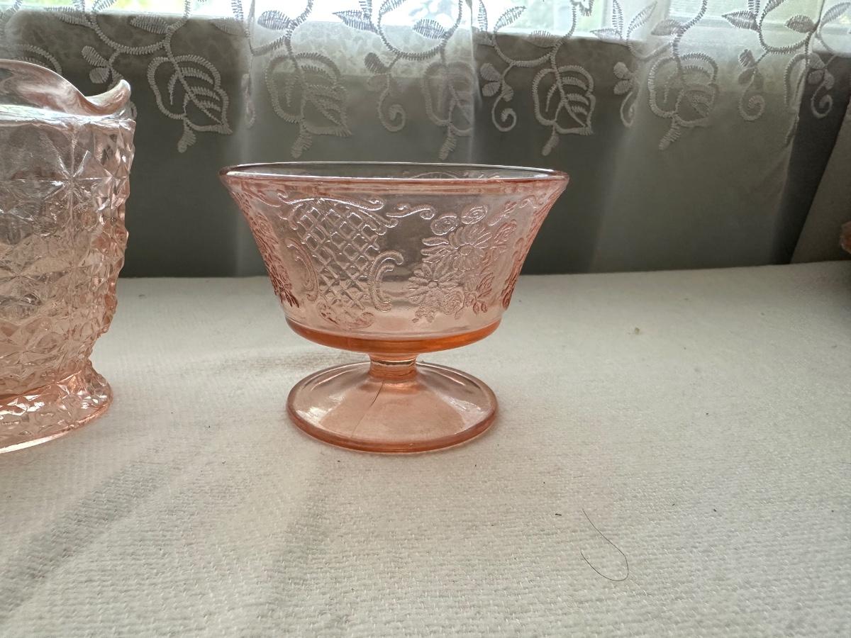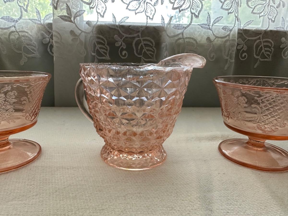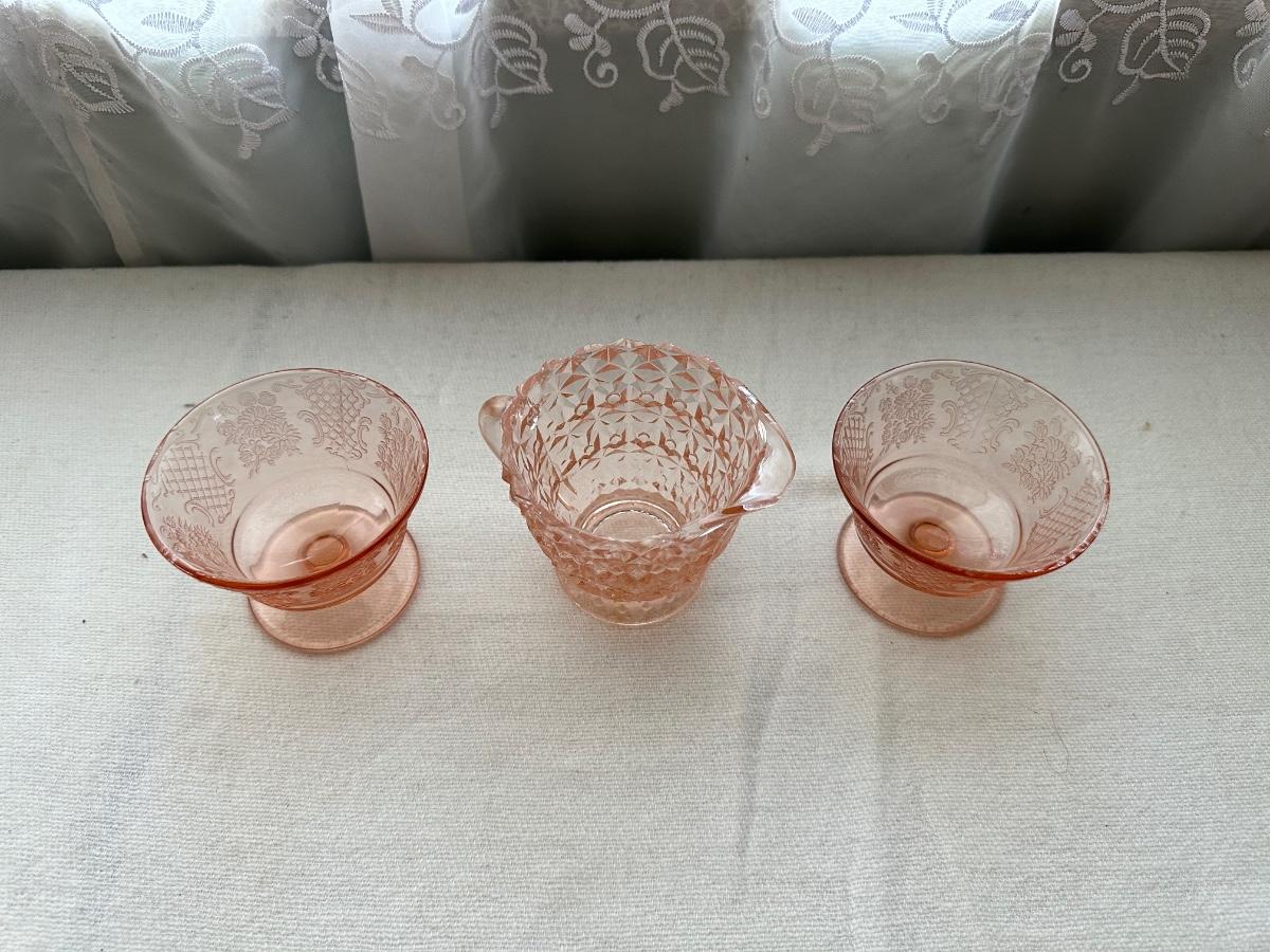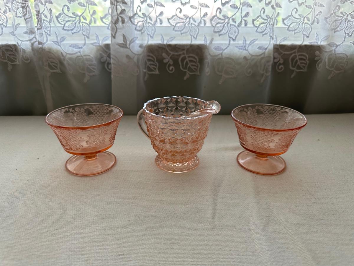 DEPRESSION GLASS BERRY BOWLS AND CREAMER