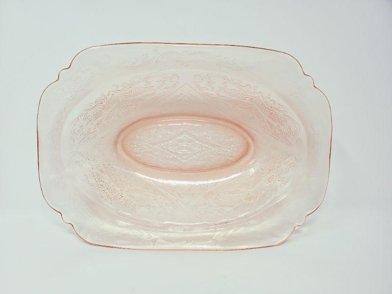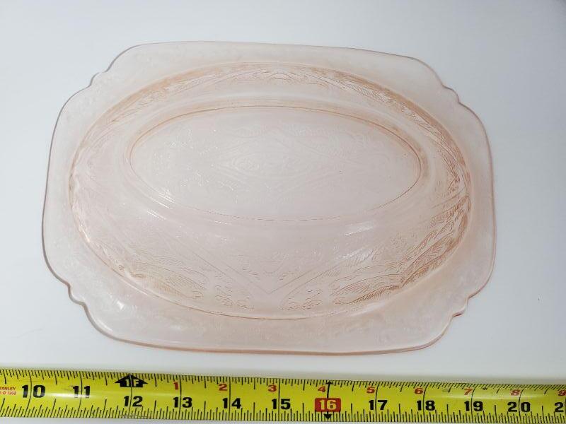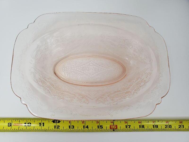 Adorable peachy pink depression? glass serving bowl, good condition, approximately 10in wide