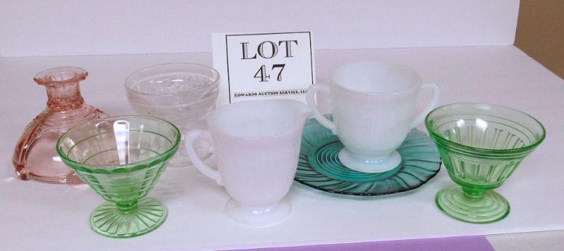 Depression Glass, Swirl Plate, American Sweetheard S/CR, Oyster & Pearls Candleholder, More