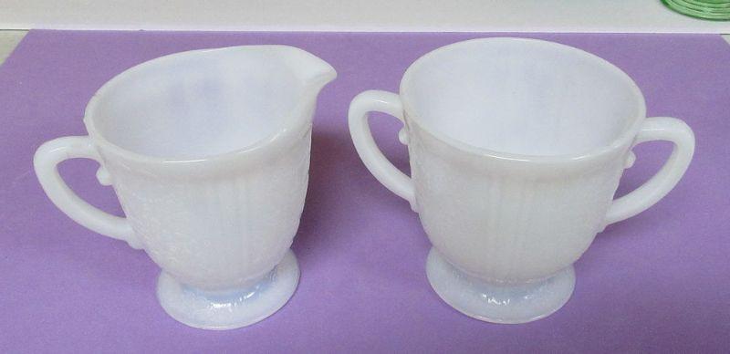 good shape, no damage. the creamer has a slight mold flaw on the rim, mold flaws on candlestick