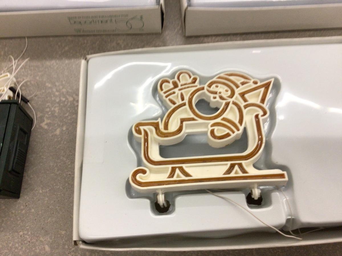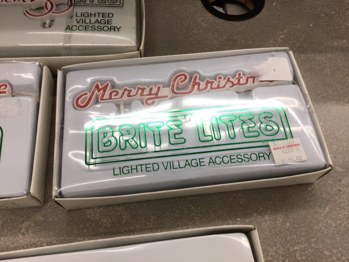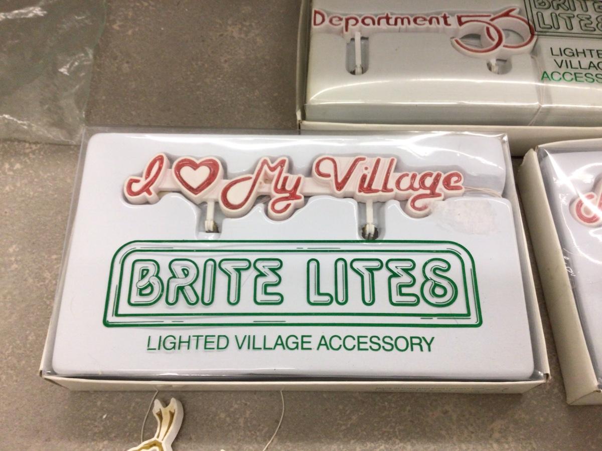 You get Tree Dept. 56 Sings, Department 56, I Love My Village, and Merry Christmas all in boxes, Reindeer with no box, and Santa