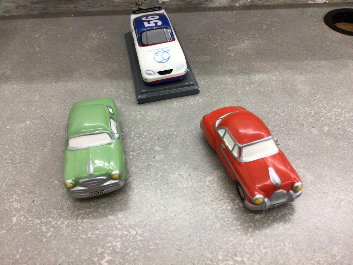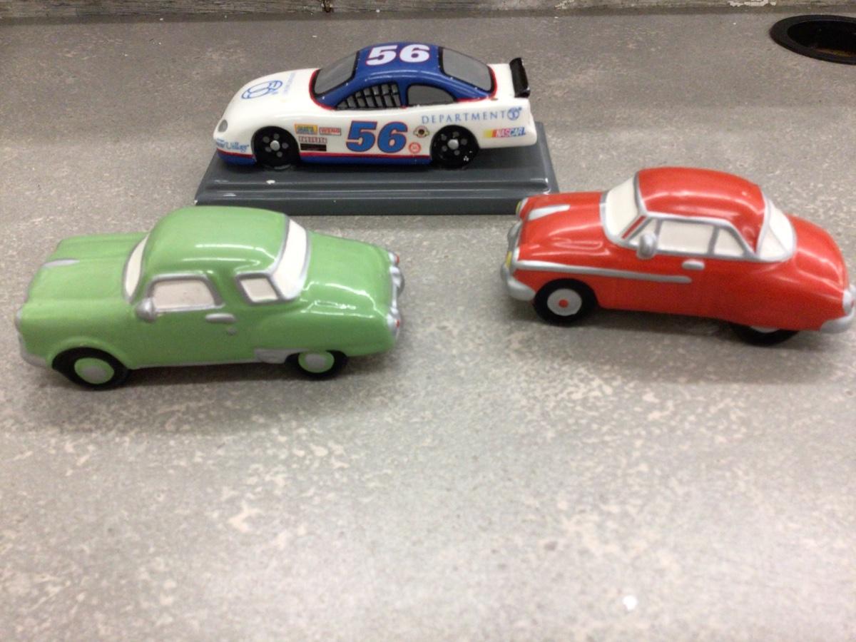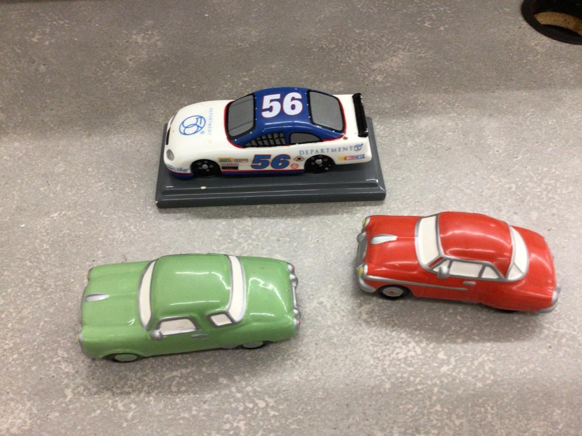 You get The NASCAR Dept. 56 , the red and green cars are not marked.