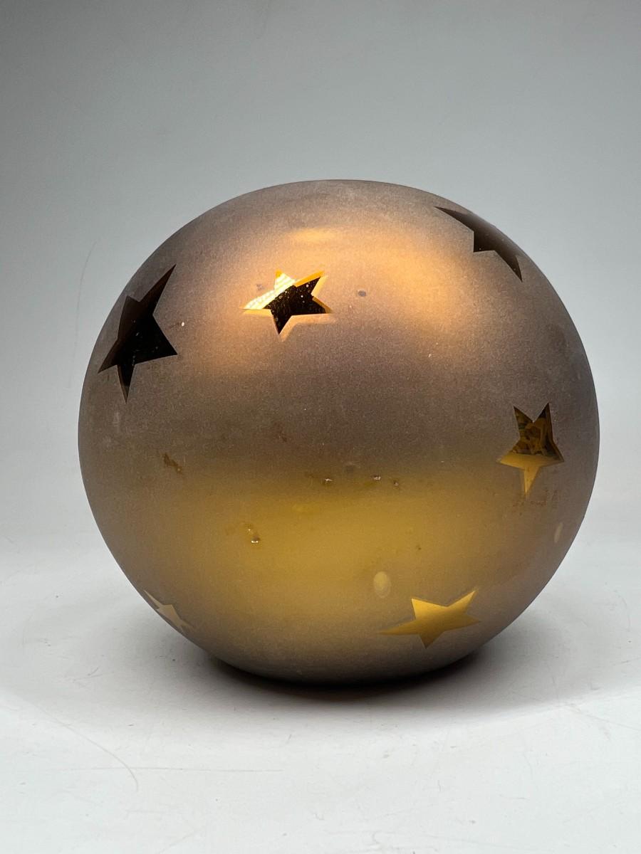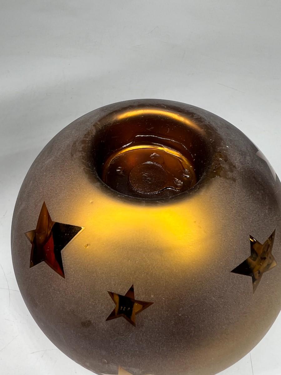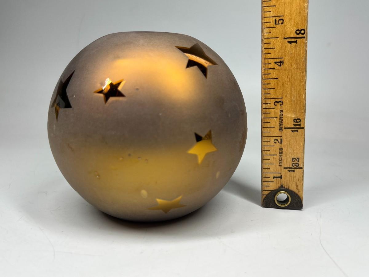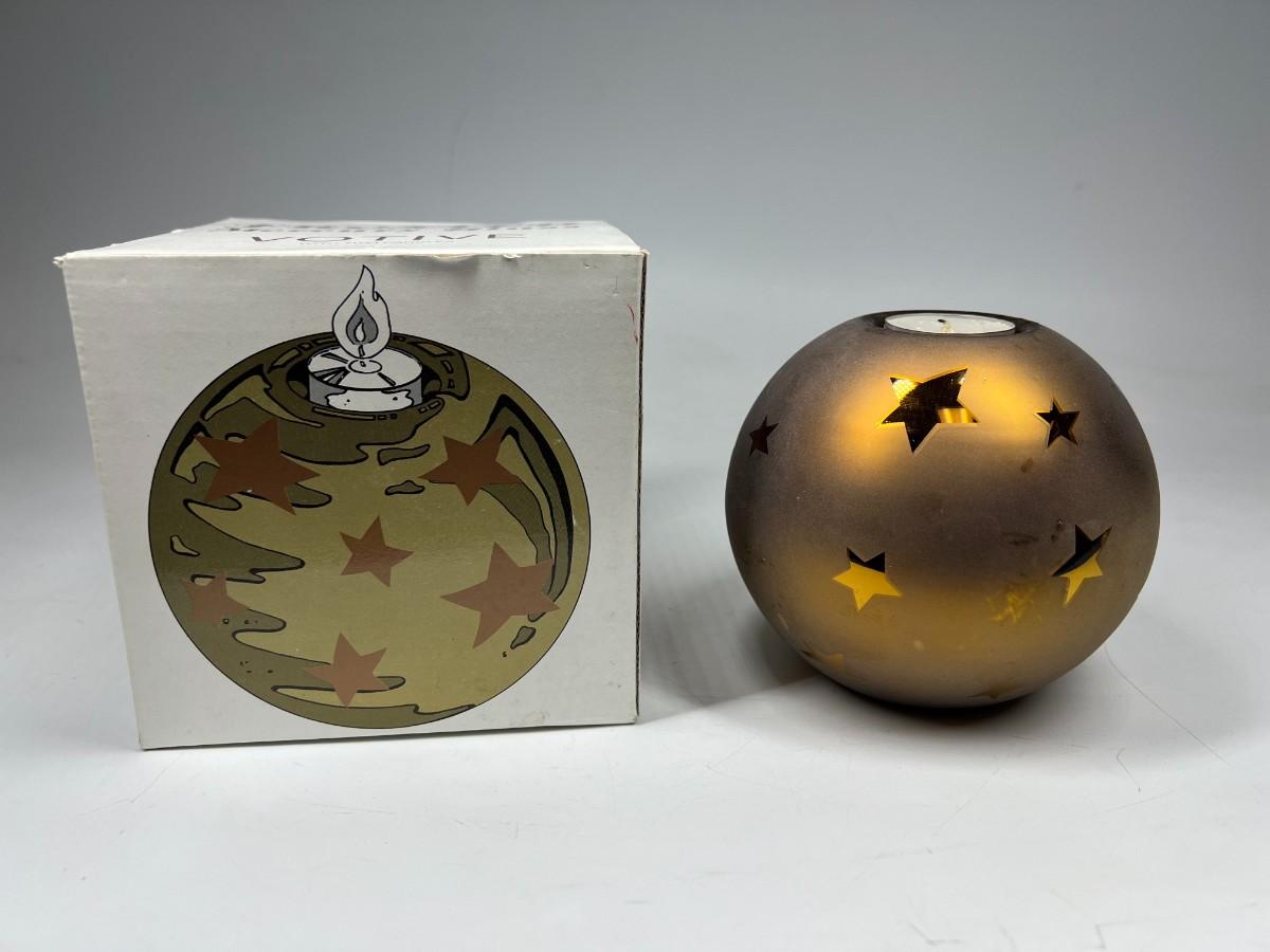 Dept 56. Gold Frosted Star Pattern Handblown Mercury Glass Votive Candle Holder with Box. In good condition.
