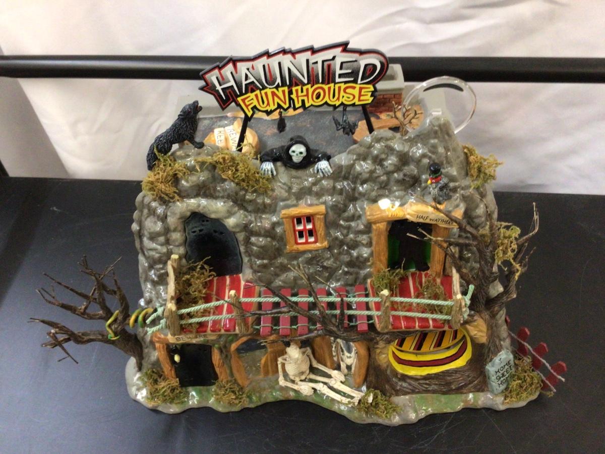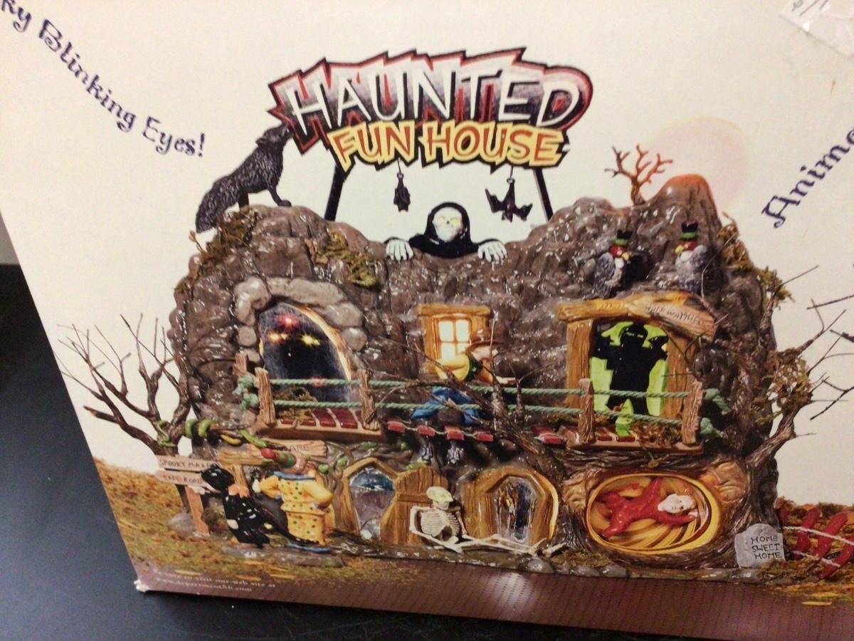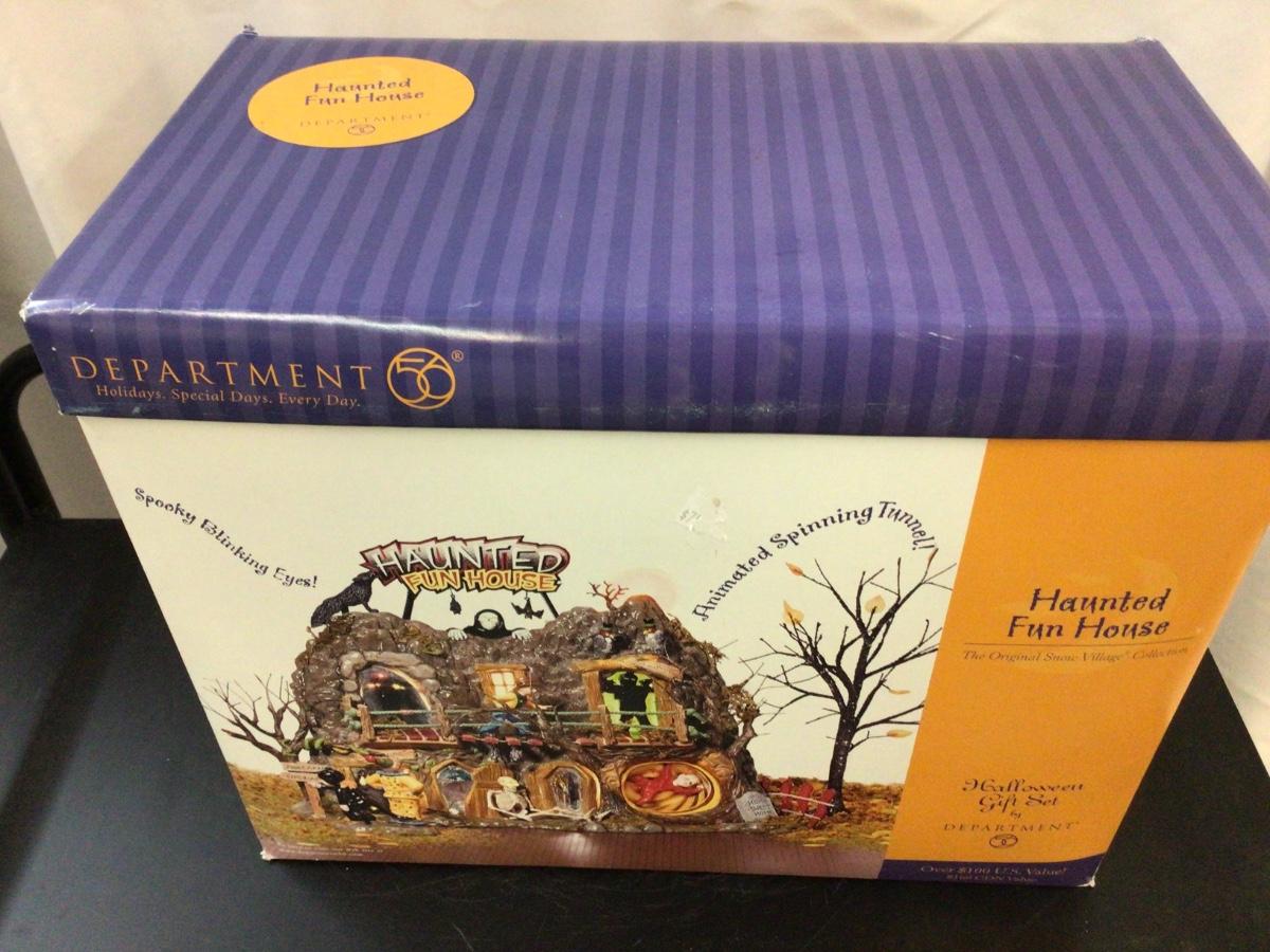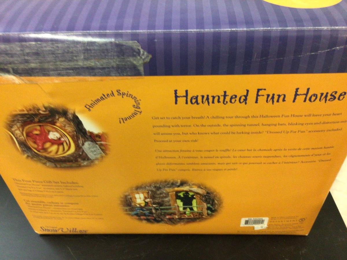 You get this great Halloween themed Dept 56 Haunted Fun House. You get the box and light.