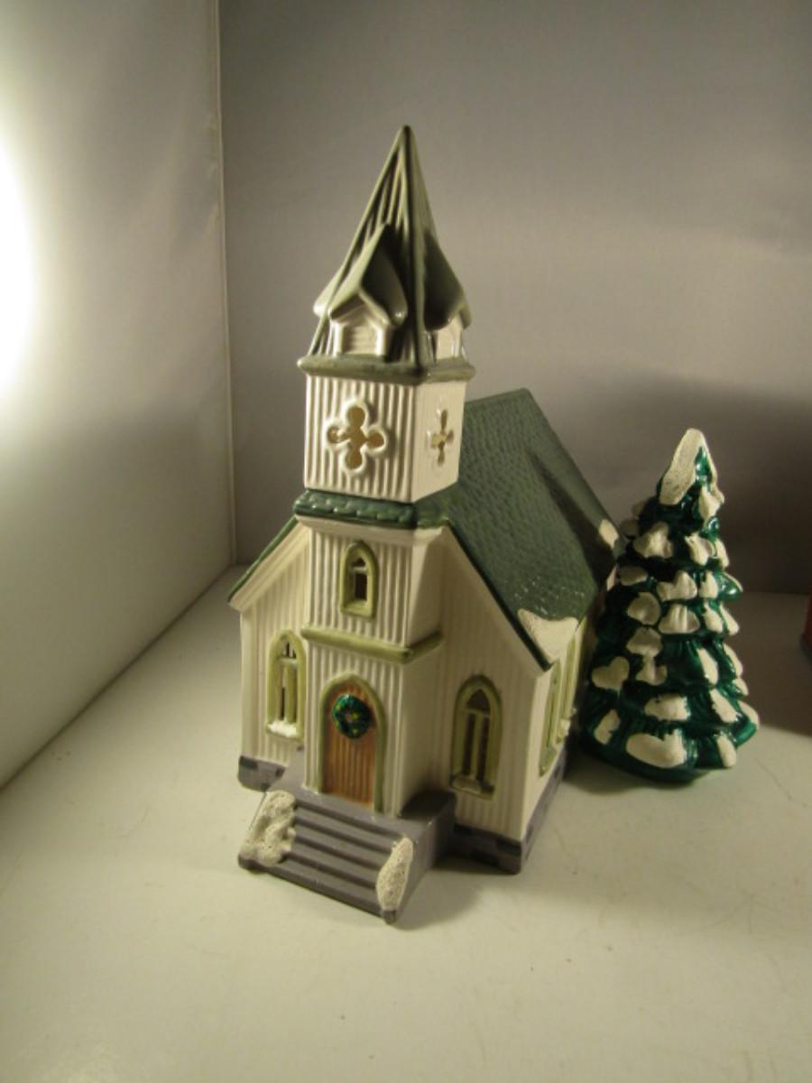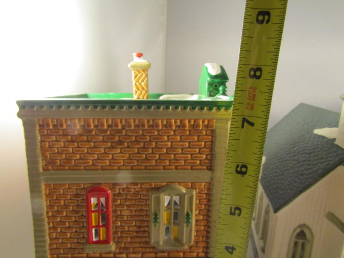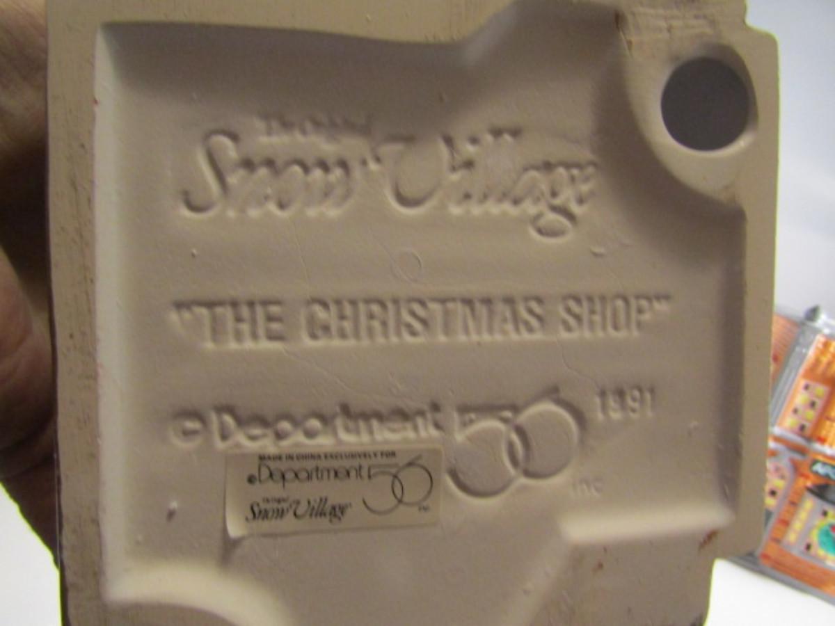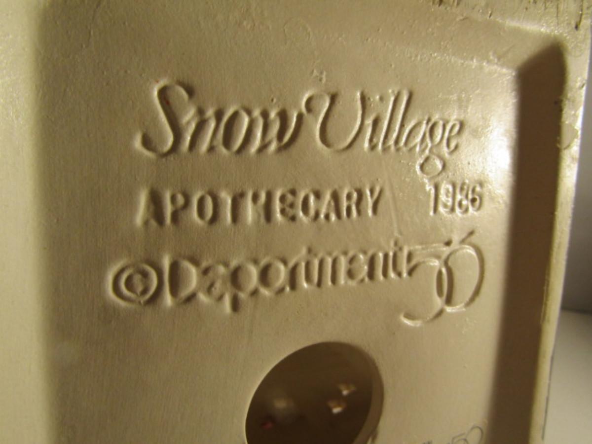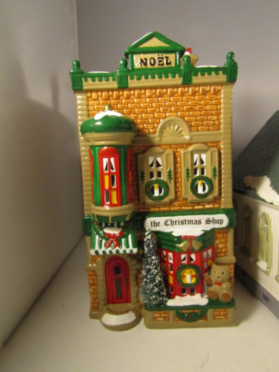 Dept. 56 Holiday Decor (#8). This listing includes: The Christmas Shop, All Saints, and the Apothecary. There is no cord or box for Apothecary. There is no cord for All Saints.