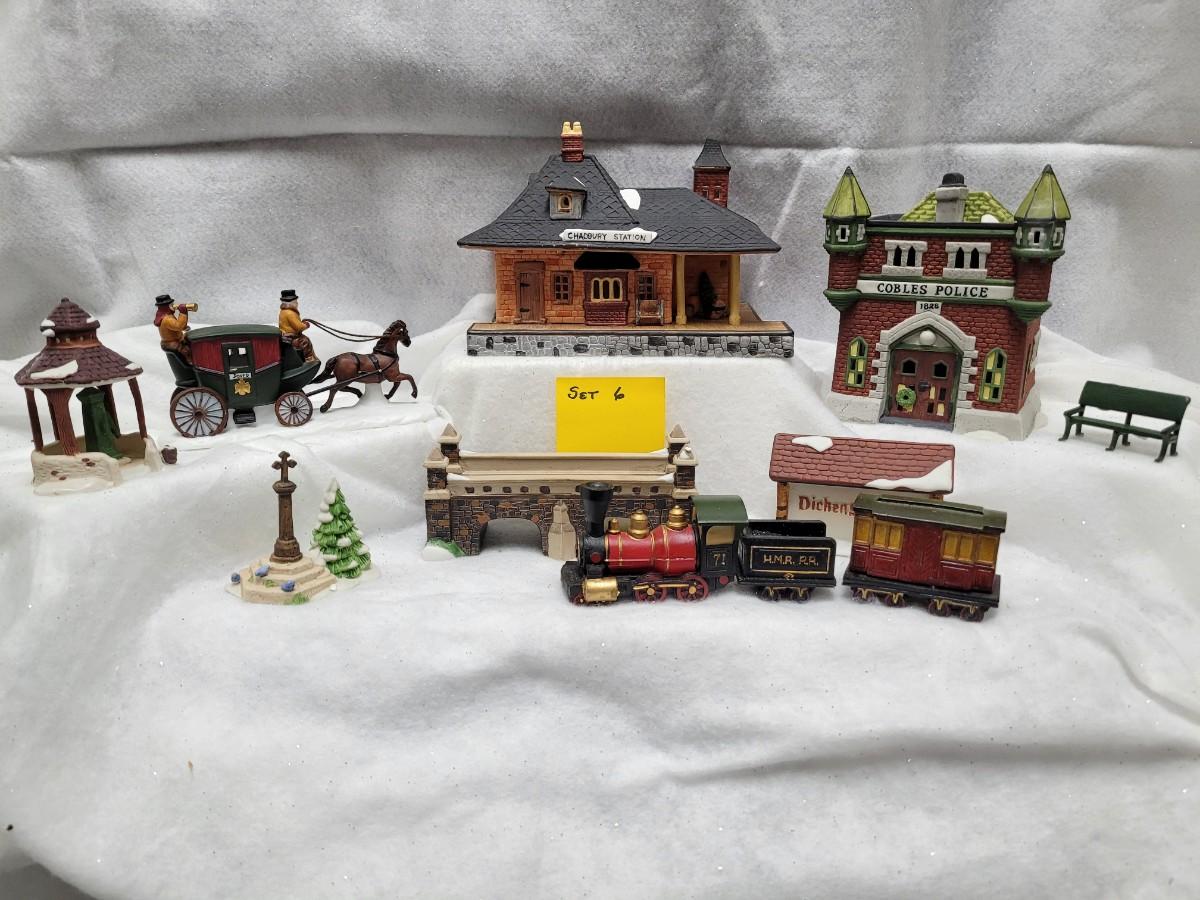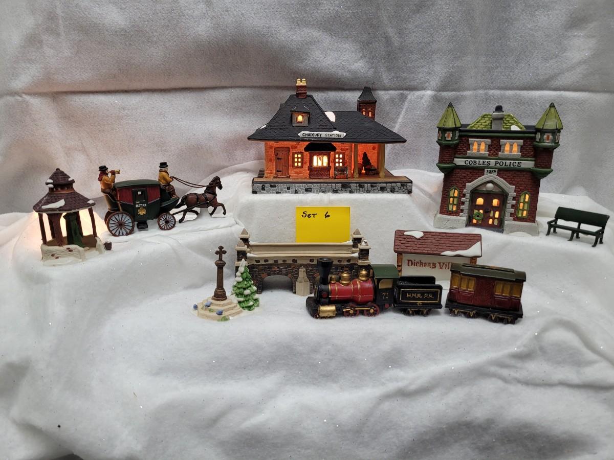 Chadbury Station, Cobles Police, Dickens VIllage Sign, Stone train trestle, Dover Coach,