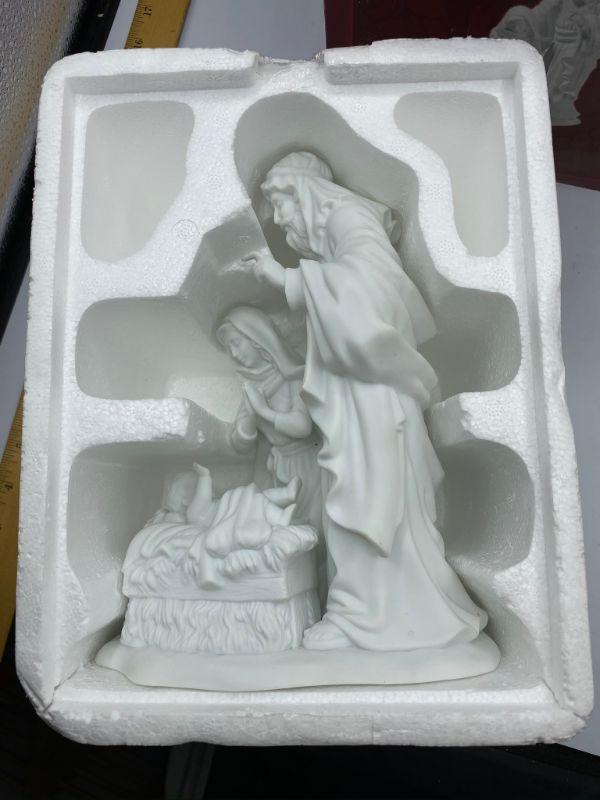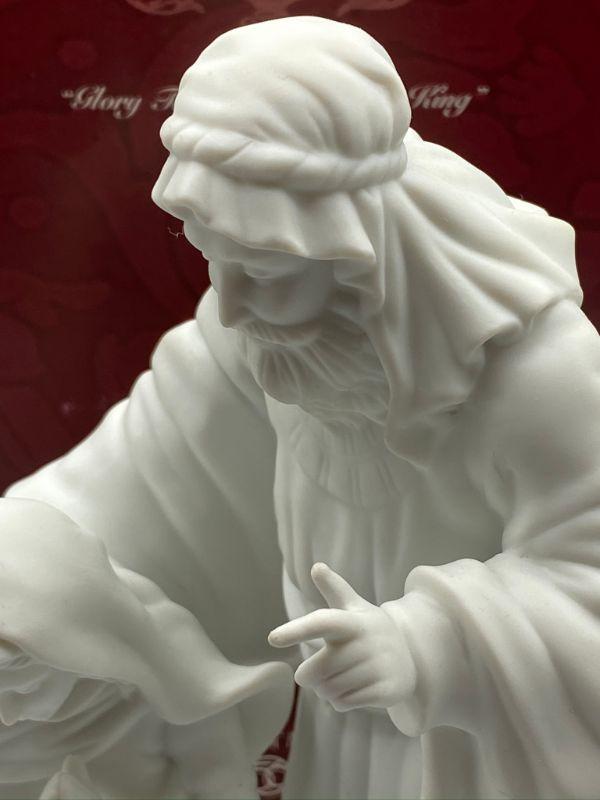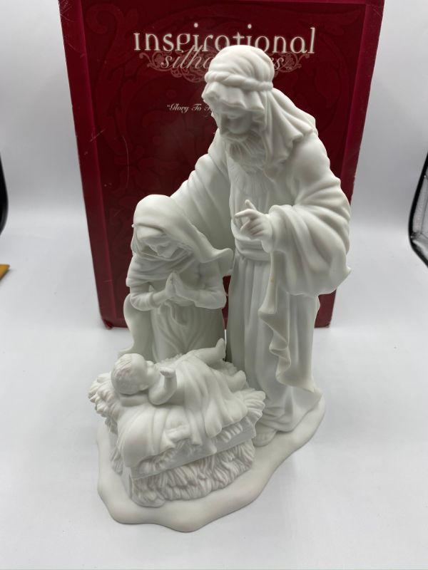 Dept 56 Nativity Figurine. Inspirational Silhouettes "Glory to the New Born King". Mary, Joseph, and Baby Jesus figurine in white. Excellent condition. Comes in original packaging.