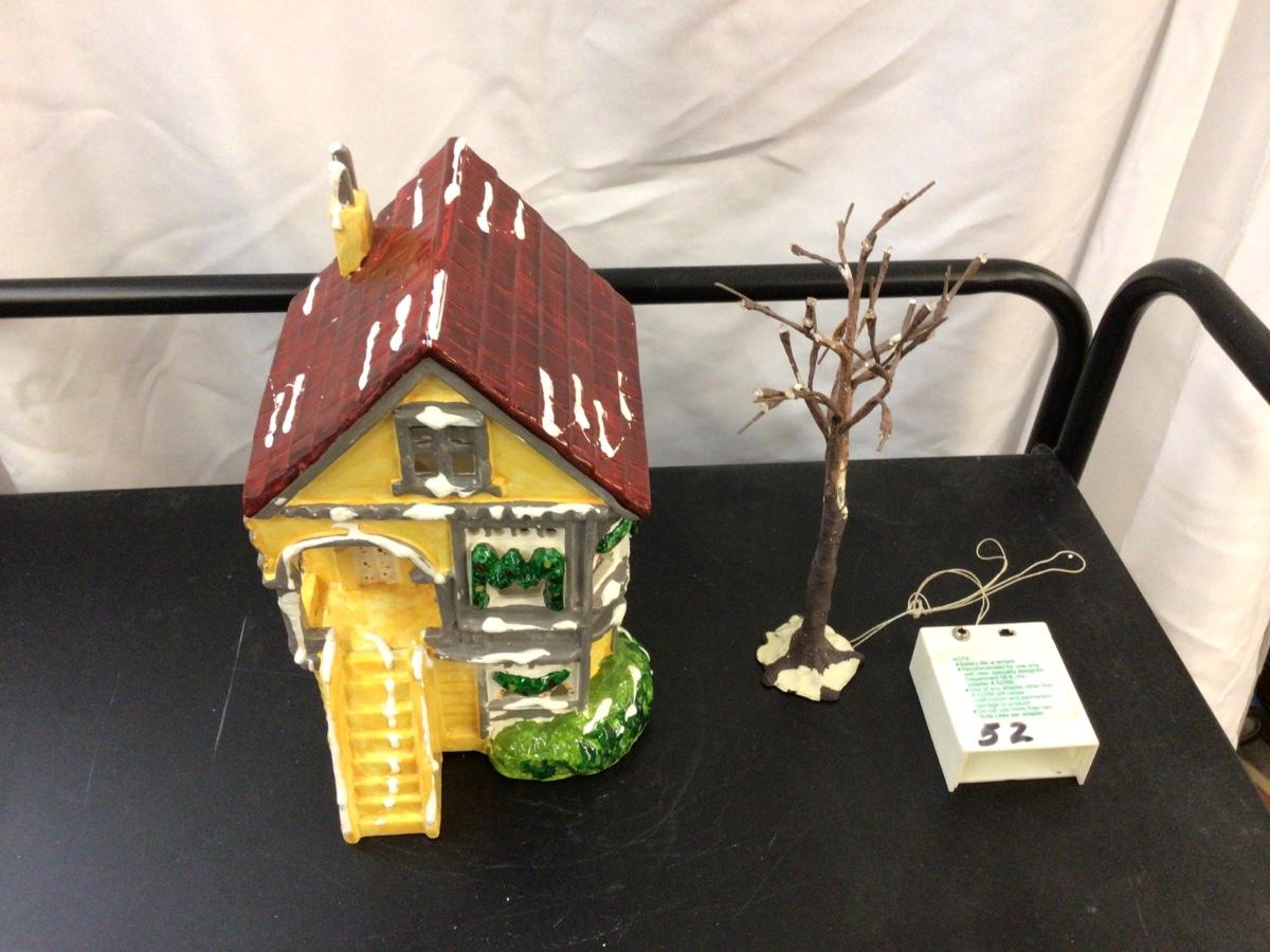 This is a great Dept 56 Knob House 1980 no box but you get light. You also get a lighted tree.