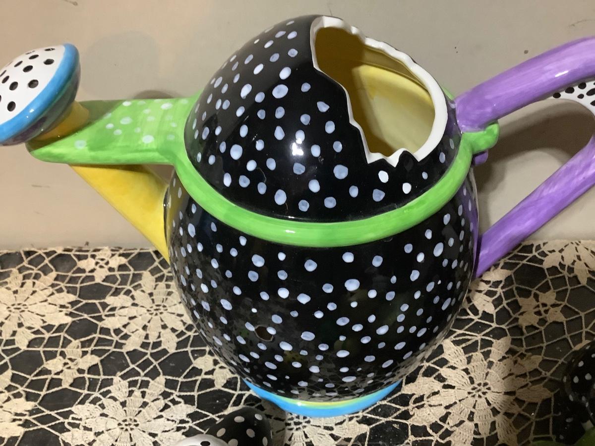 You get Dept 56 large teapot, bunny tray with Easter eggs, and three egg candle holder.